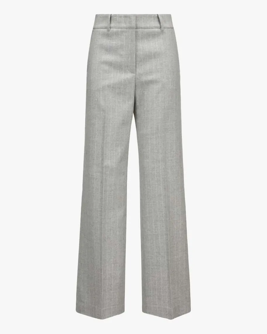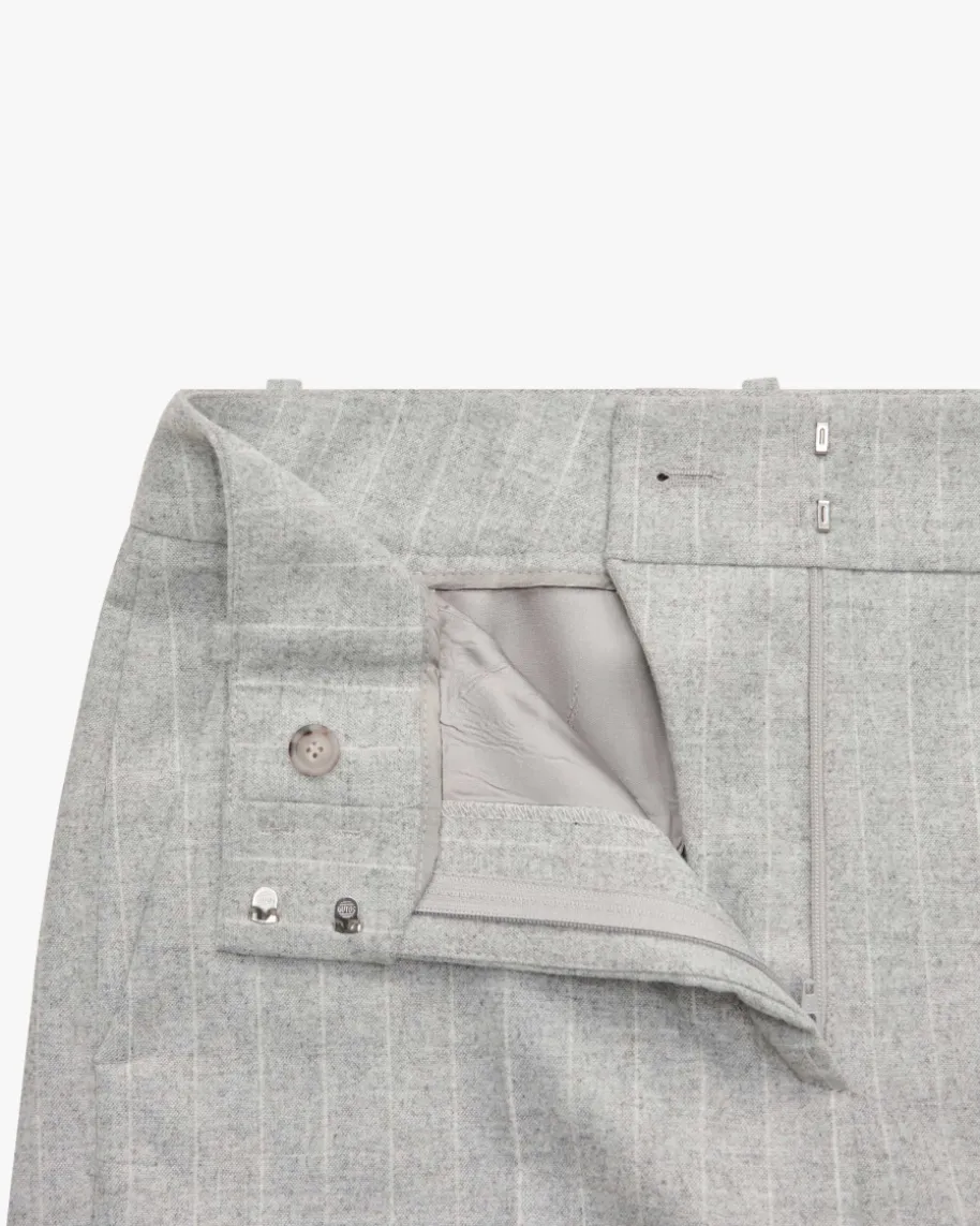 Hose für Damen von Peserico Easy in Hellgrau und Weiß. Das Modell präsentiertmit geradem Bein und hohem Bund, während der leichte Woll-Mix eine angenehmeHaptik verleiht. Das Nadelstreifen-Dessin sorgt zusammen mit der melierten Optikfür den letzten Schiff und kreiert so einen stilvollen Look für Office- oderCasual-Looks.
