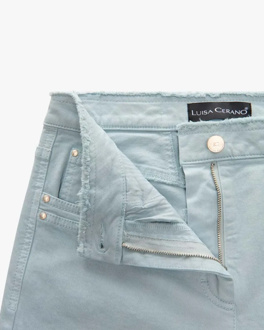 Hose Straight für Damen von Luisa Cerano in Hellblau. Das modische 5-Pocket-Modellbesticht dank klassischer Details in stilvoller Aufmachung, während Fransen amBund dem Gesamtbild den letzten Schliff verleihen.