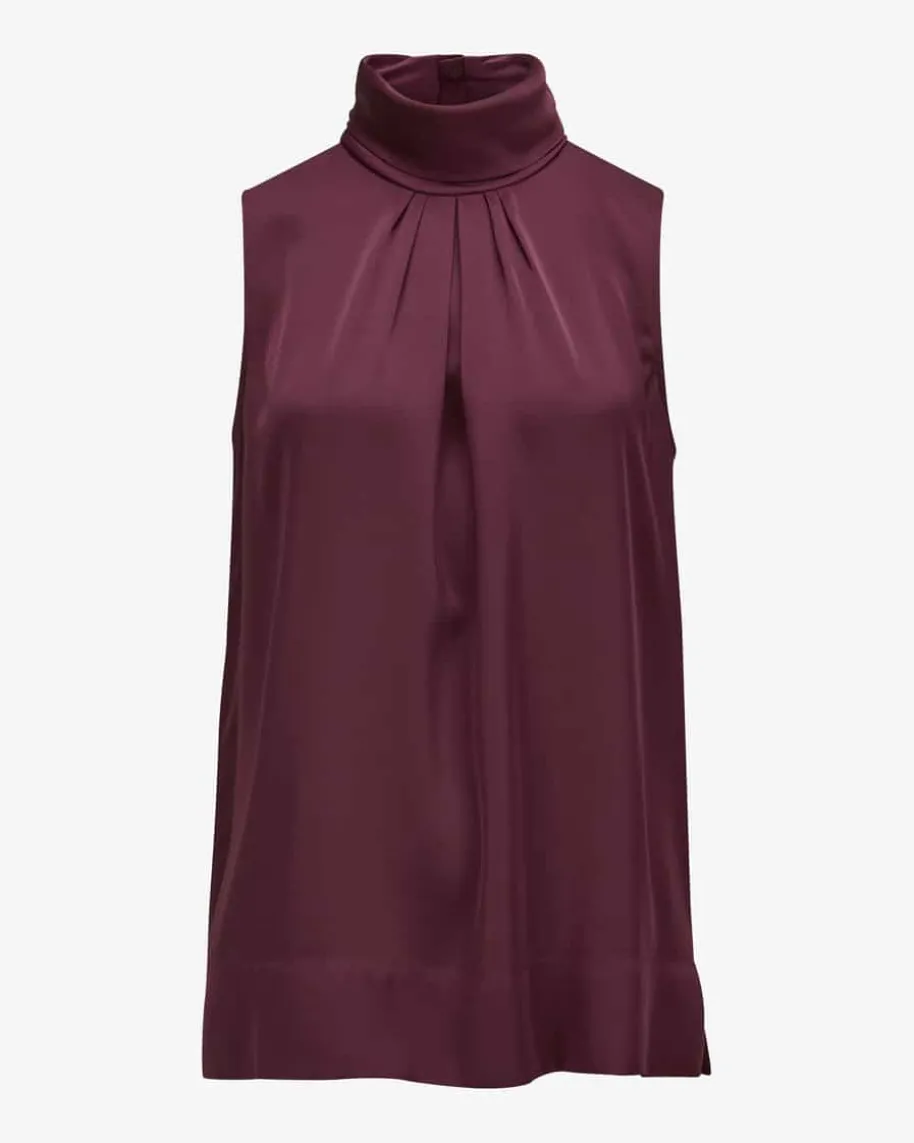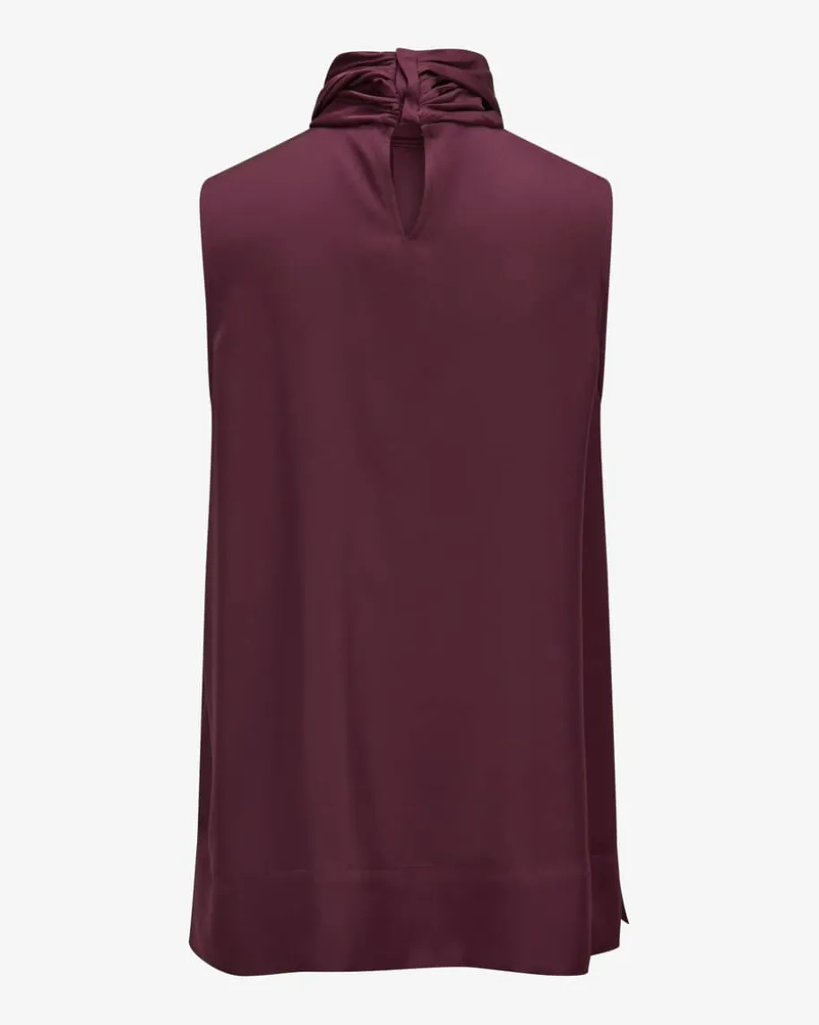 Huba Seidenblusentop für Damen von Hemisphere in Bordeaux. Während die feminineBlusen-Aufmachung mit hohem Stehkragen einen eleganten Begleiter für stilvolleLooks schafft, sorgt die elastische Seiden-Qualität für haptische Highlights.