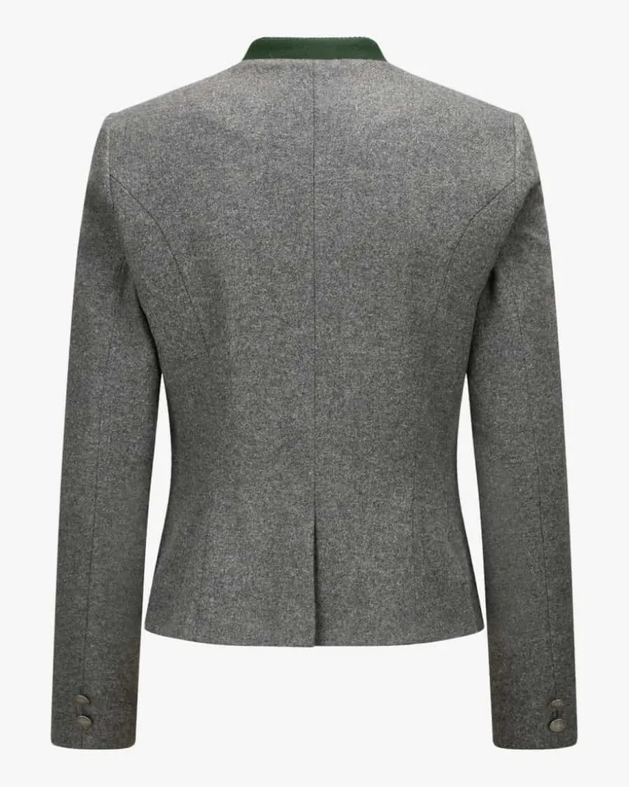 Huberta Trachtenblazer für Damen von Anno Domini in Anthrazit. Das Modellüberzeugt durch den hochwertigen Woll-Mix, während kontrastierende Details sowieWappen-Knöpfe traditionelle Akzente setzen.