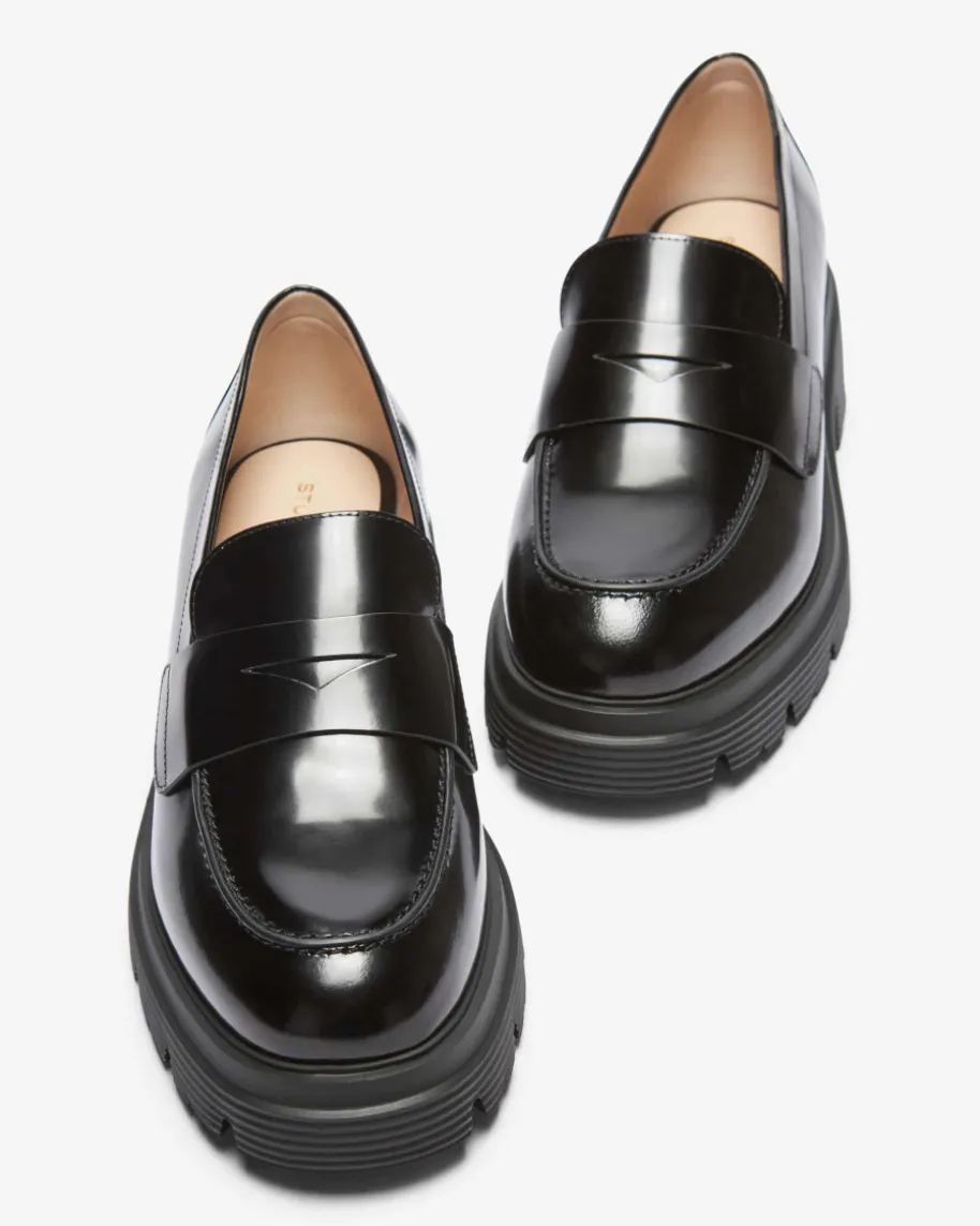 Hudson Lite Loafer für Damen von Stuart Weitzman in Schwarz. Die US-Marke istweltbekannt für elegante Pumps, Overknees und Bridal-Heels – luxuriös, abertragbar. Glattes Leder verleiht dem robusten Modell eine edle Note, währendZiernähte und ein dekorativer Zierriegel für den stilvollen Feinschliff sorgen –ein vielseitiger Begleiter für modische Looks mit Brit-Chic-Flair.