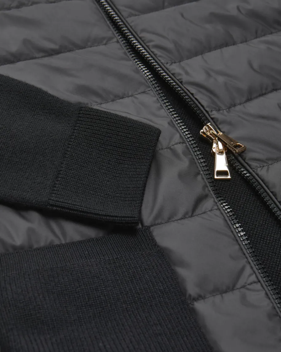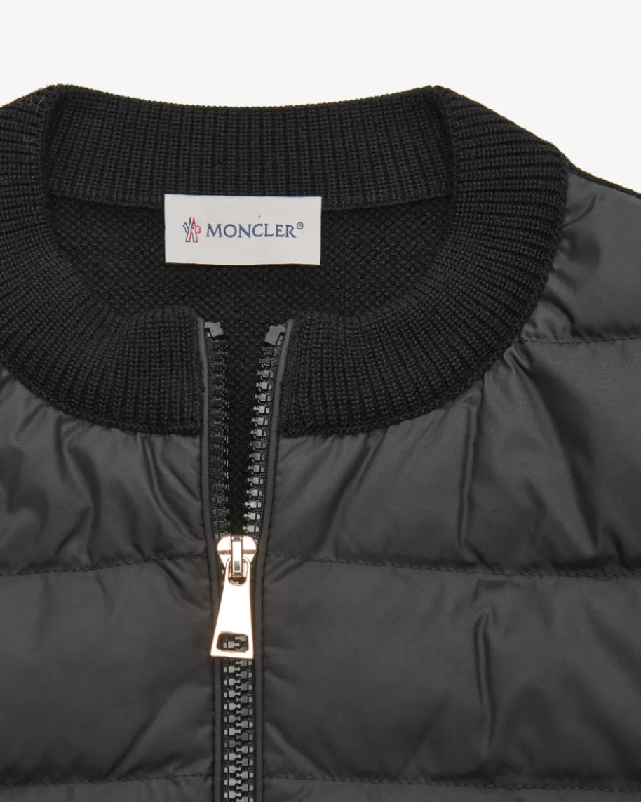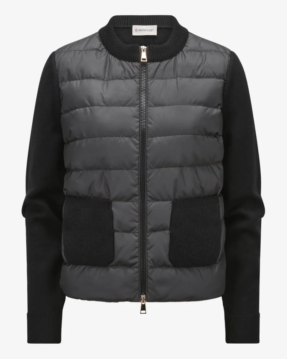 Hybrid Strickjacke für Damen von Moncler in Schwarz. Denkt man an hochwertige,warme Daunenjacken, kommt einem unweigerlich das italienische TraditionslabelMoncler in den Sinn. Das Modell in sportiven Design, überzeugt mit wärmenderDaunen-Feder-Füllung, während die hochwertige Schurwoll-Qualität den Gesamtlookharmonisch abrundet.