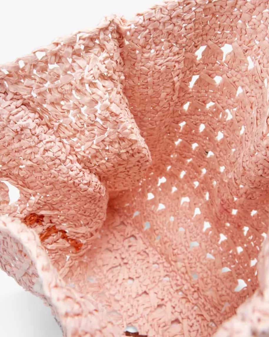 Riviera Chic Raffia Henkeltasche für Damen von De Siena in Rosa, Braun undOrange. Während die sommerliche Bast-Aufmachung im handgefertigten Design einenbesonderen Strand- oder Casual-Favoriten schafft, fügt der auffällige Urlaubs-Schriftzug eine originelle Note hinzu.