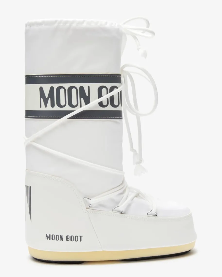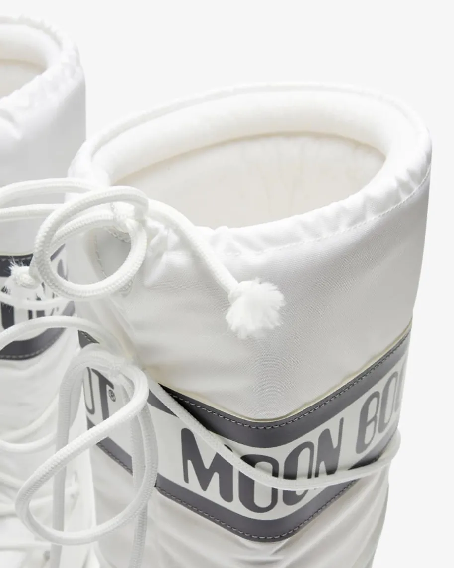 Icon Moon Boots für Damen von Moon Boot in Weiß und Dunkelgrau. Das in den1970er Jahrengegründete Label hat seine Inspiration in der Mondlandung von Neil Armstronggefunden. Mit wasserabweisender Beschichtung präsentiert sich der Winterstiefelin gewohnt futuristischer Aufmachung. Diverse Logo-Details sowie der hohe Schaftvollenden das modische Gesamtbild gekonnt.