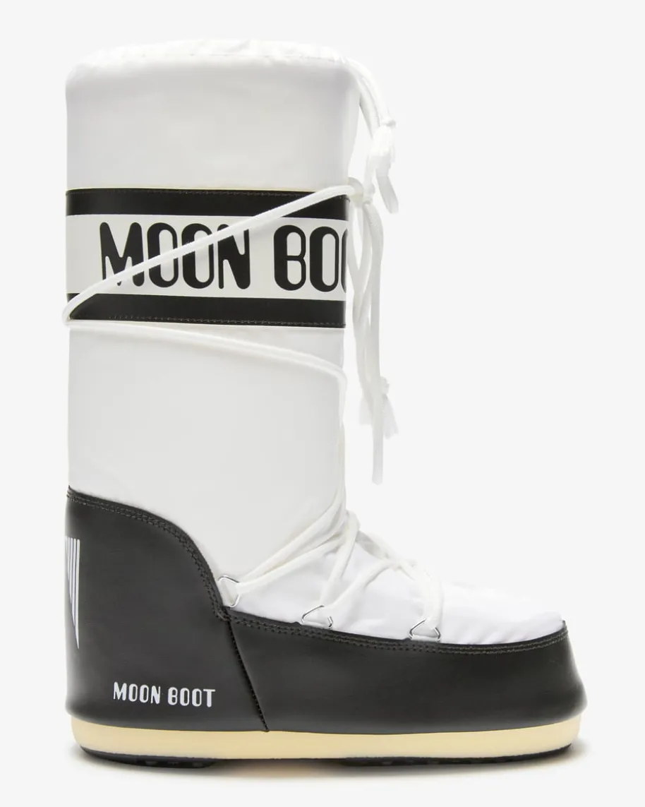 Icon Moon Boots für Damen von Moon Boot in Weiß und Schwarz. Das in den 1970erJahrengegründete Label hat seine Inspiration in der Mondlandung von Neil Armstronggefunden. Mit wasserabweisender Beschichtung präsentiert sich der Winterstiefelin gewohnt futuristischer Aufmachung. Diverse Logo-Details sowie der hohe Schaftvollenden das modische Gesamtbild gekonnt.