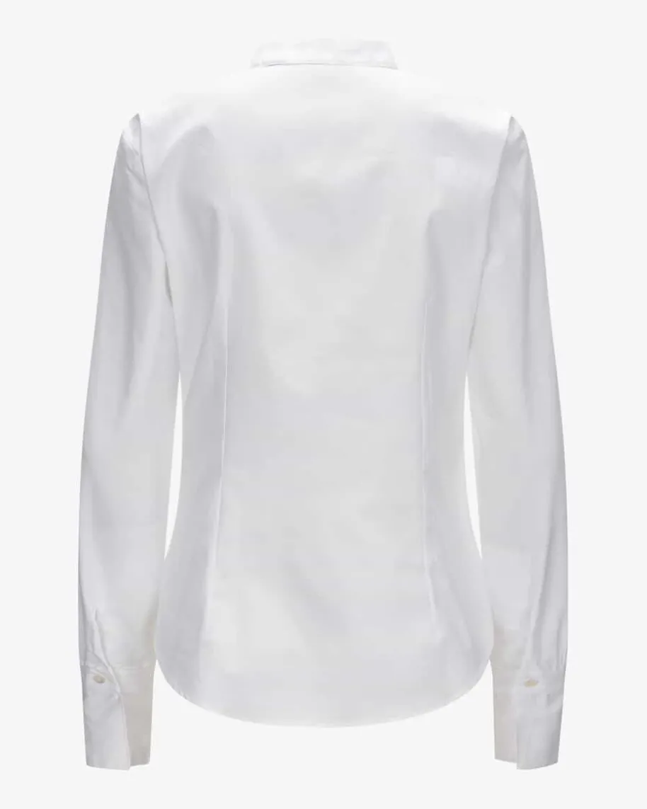 Icon Nr.3 Bluse für Damen von Style Icon in Weiß. Iconic, timeless, mit einemGlam of the Moment – Das ist die Handschrift des 2016 geründeten Labels. Auchdieses taillierte Modell aus angenehmer Baumwoll-Qualität präsentiert sich dankklassischer Details in zeitlos-eleganter Aufmachung, während stilvolle Biesen-Falten den Look feminin ergänzen.