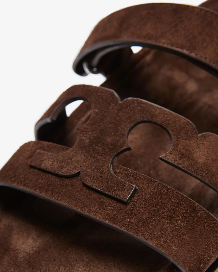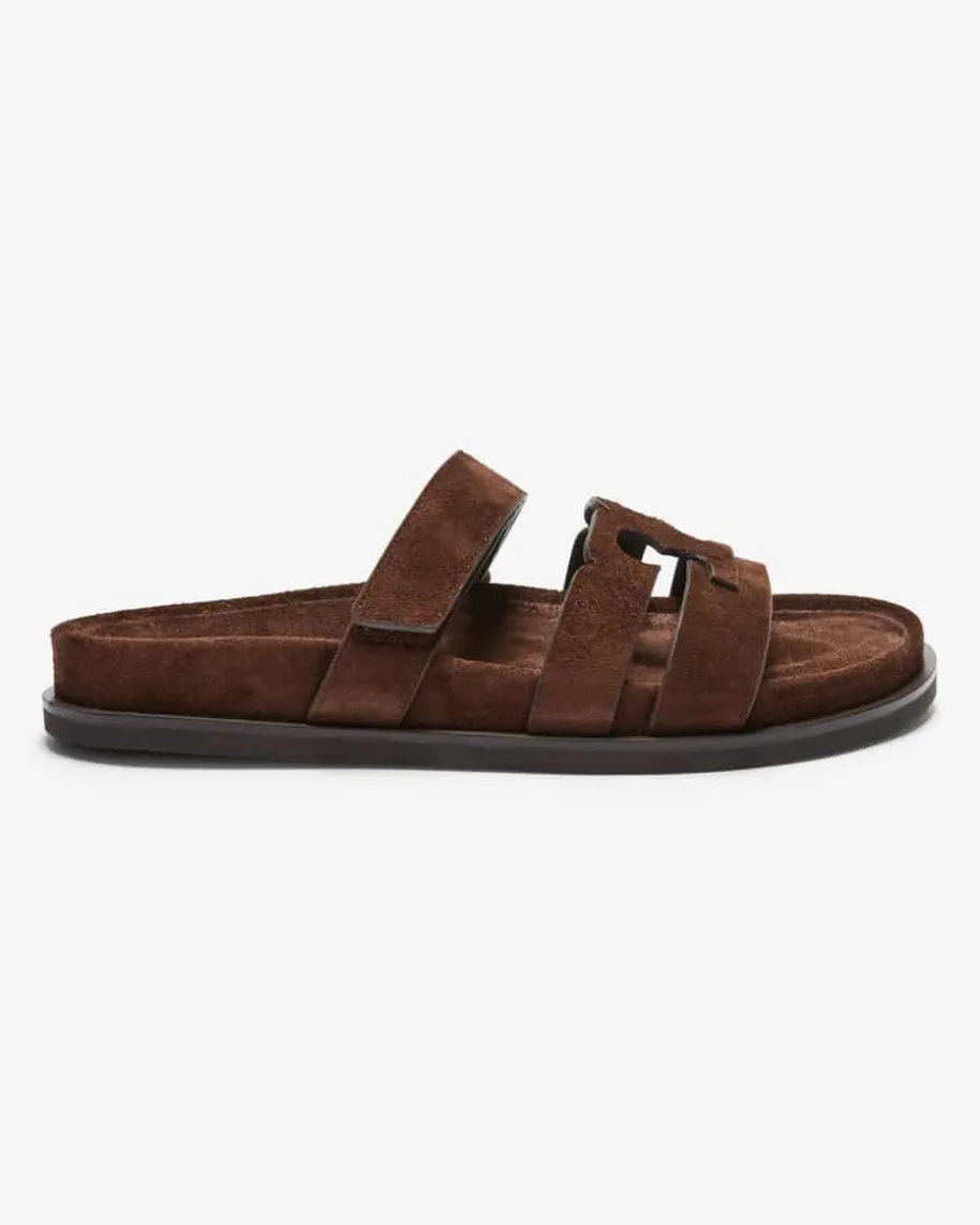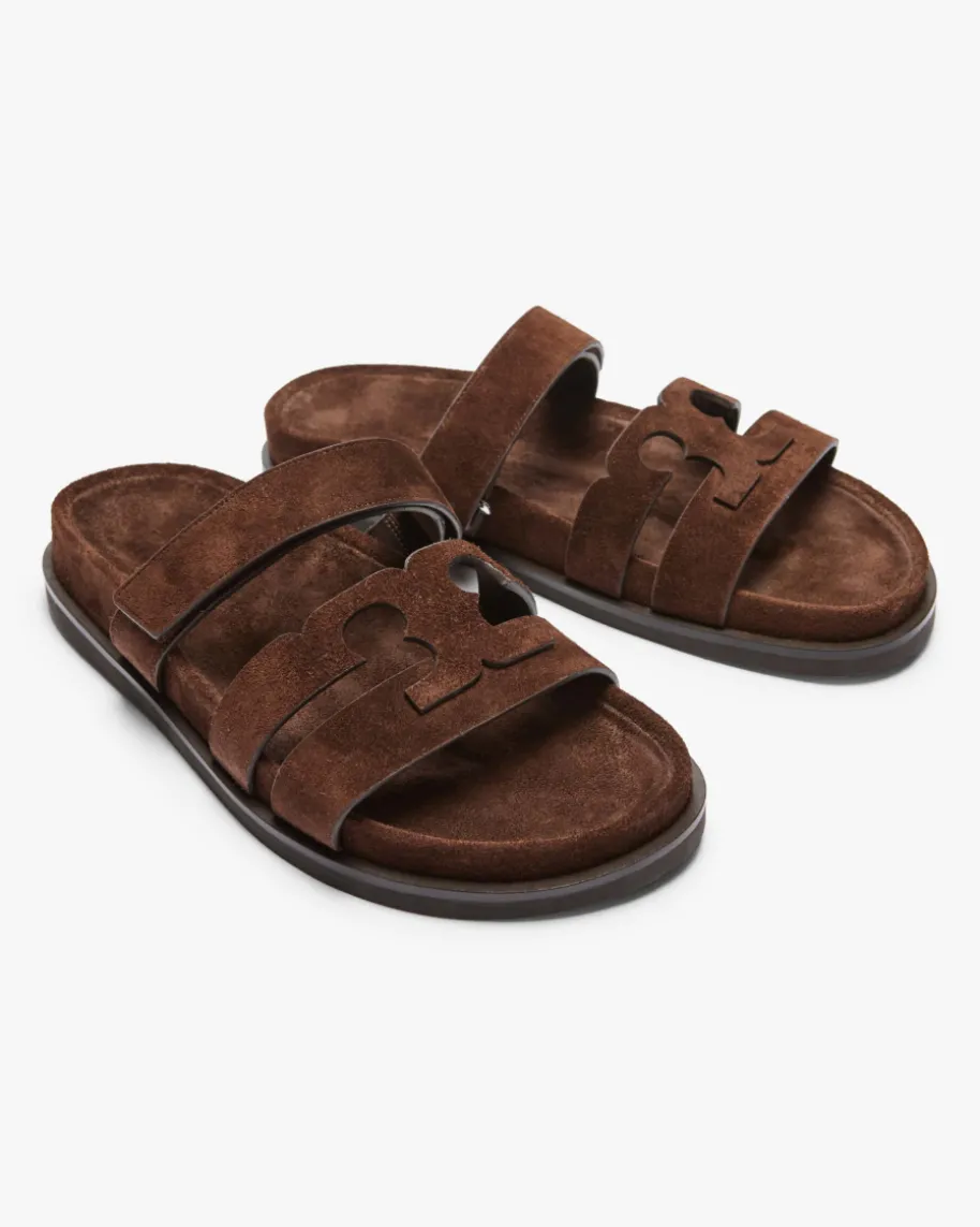 Ines Pantoletten für Damen von Tory Burch in Dunkelbraun. Das Modell präsentiertsich dank der hochwertigen Veloursleder-Riemen in modischer Aufmachung, währenddas geformte Fußbett ein angenehmes Tragegefühl verspricht.
