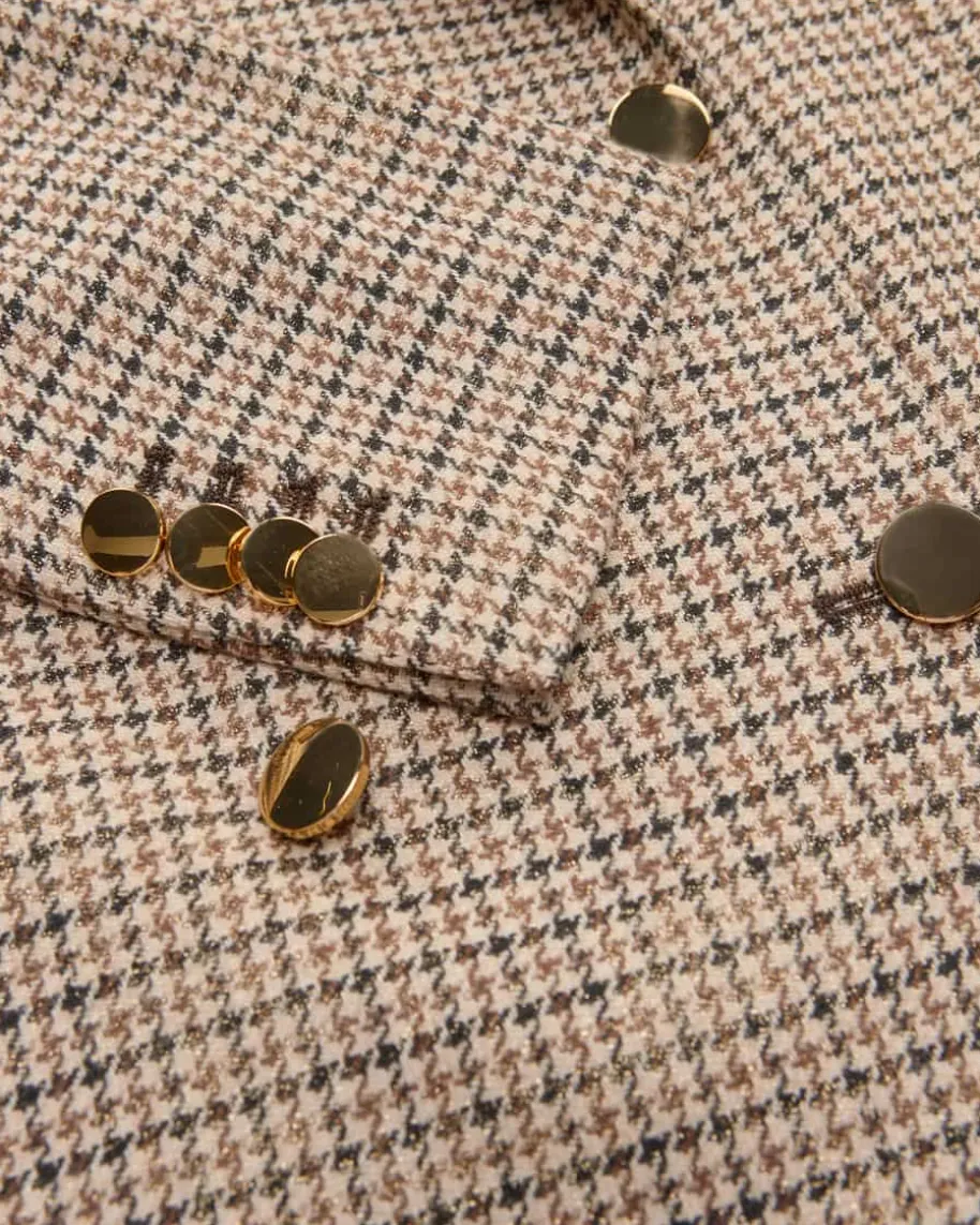 Jasmine Doppelreiher-Blazer für Damen von Tagliatore in Braun und Beige. DasModell präsentiert sich dank der klassischen Schnittführung sowie des zeitlosenHahnentritt-Musters in modisch-eleganter Aufmachung, während goldene Knöpfe demGesamtbild den letzten Schliff verleihen.