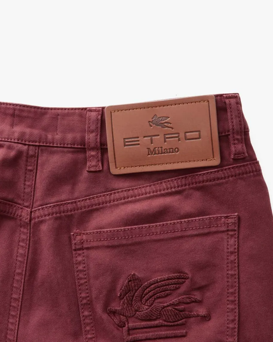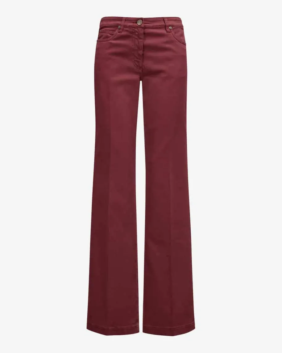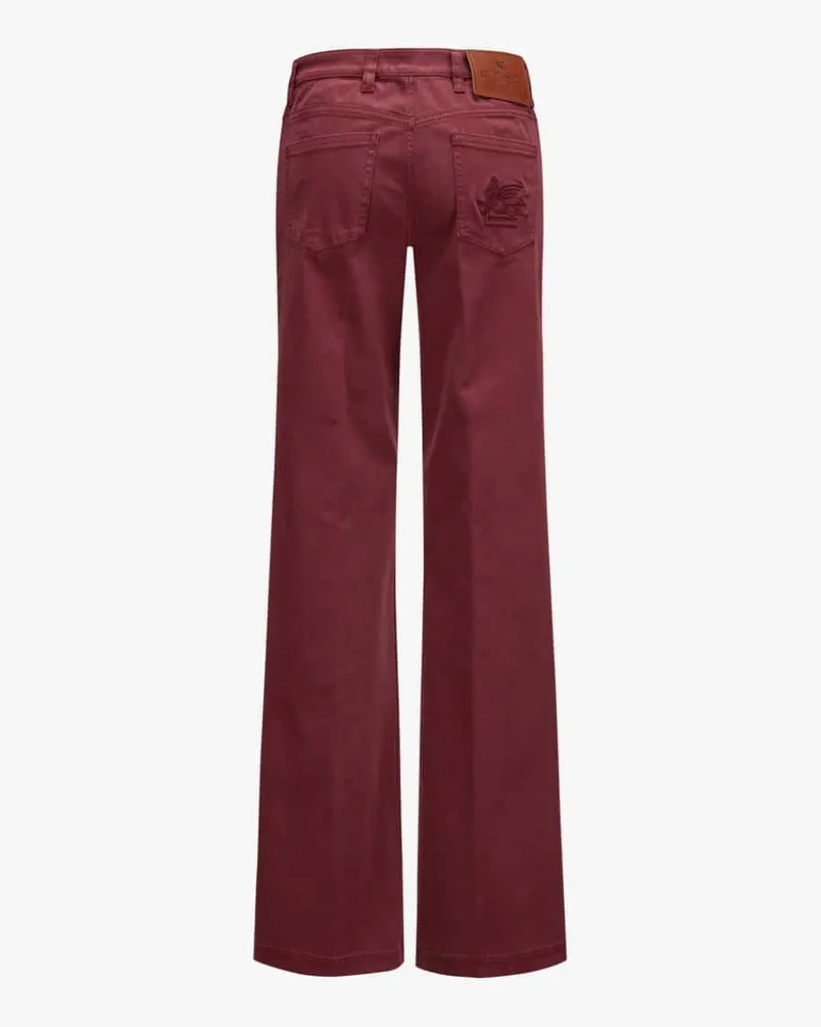 Jeans für Damen von Etro in Bordeaux. Dank des extralangen Schnitts mit weitem,leicht ausgestelltem Bein präsentiert sich das Modell als modischer Favorit,während die softe und leichte Baumwoll-Qualität für angenehme Tragemomentesorgt. Die tonale Logo-Stickerei sowie das Leder-Badge runden den Lookcharakteristisch ab.