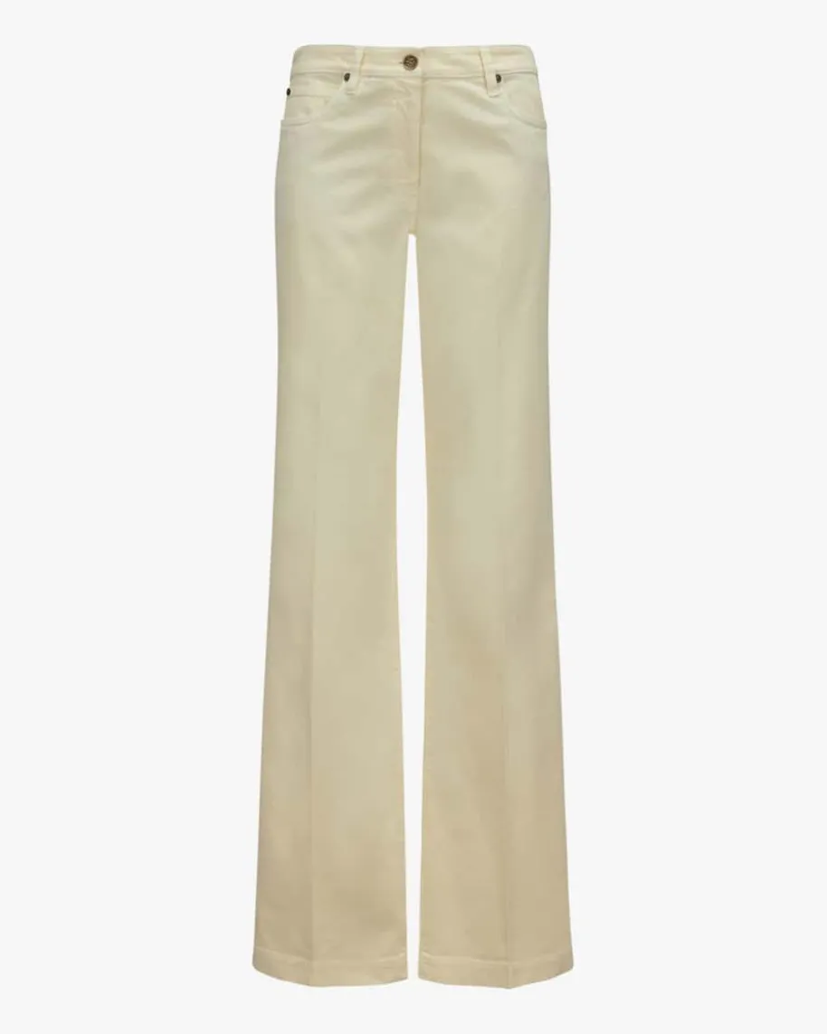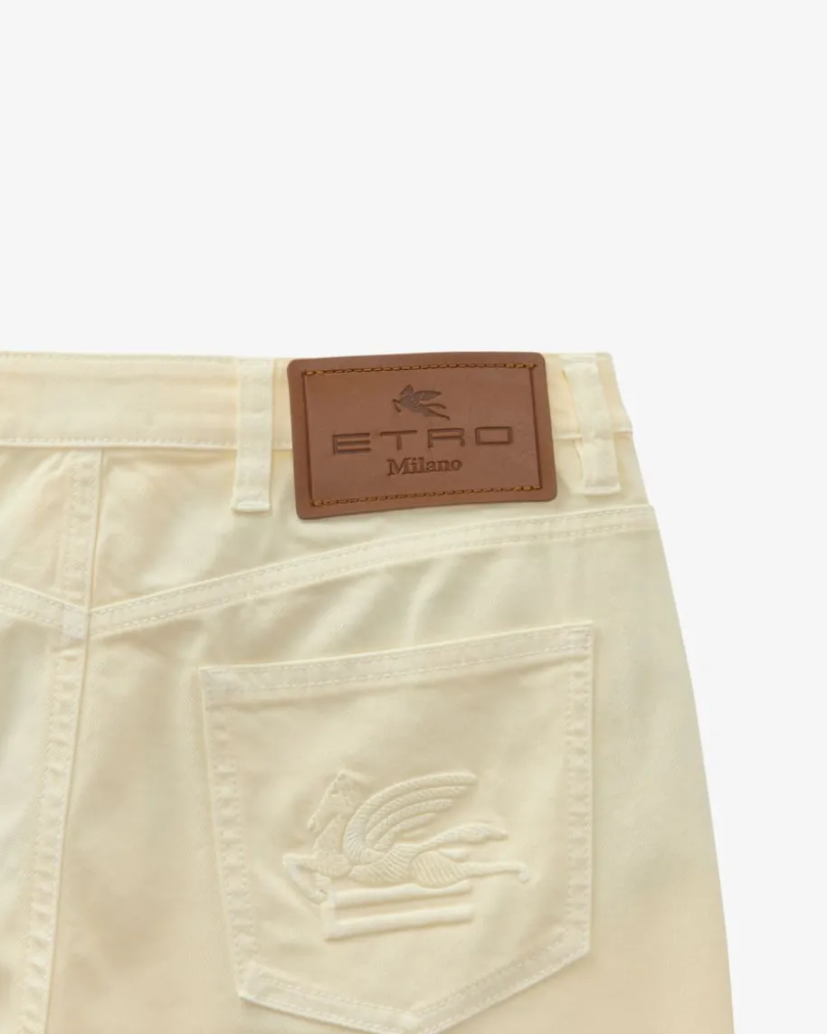 Jeans für Damen von Etro in Vanille. Dank des extralangen Schnitts mit weitem,leicht ausgestelltem Bein präsentiert sich das Modell als modischer Favorit,während die softe und leichte Baumwoll-Qualität für angenehme Tragemomentesorgt. Die tonale Logo-Stickerei sowie das Leder-Badge runden den Lookcharakteristisch ab.
