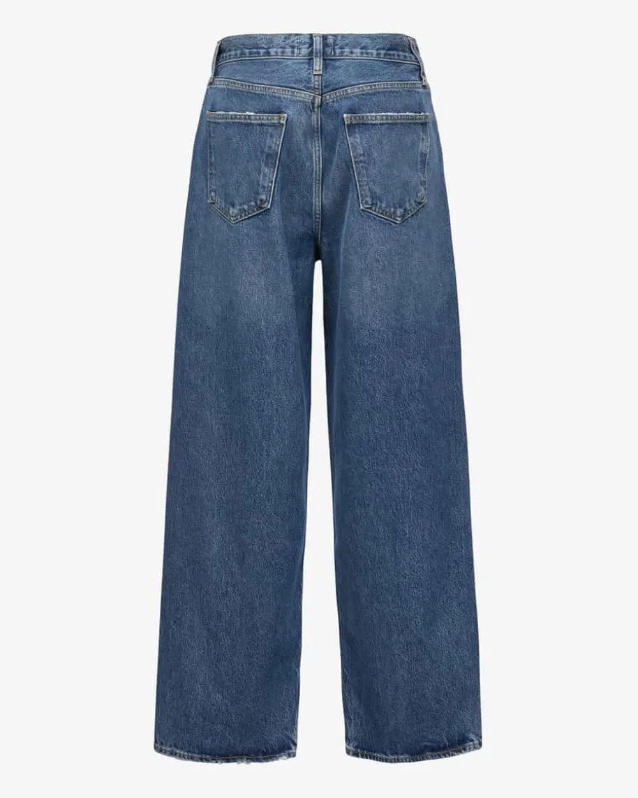 Jeans Low Slung Baggy für Damen von Agolde in Blau. Das Modell mit weitem Beinzeichnet sich durch den modischen Washed Effekt und dezente Destroyed- Detailsaus und besticht durch angenehme Baumwoll-Qualität. Die trendige Baggy- Passformrundet den Denim-Look gekonnt ab.