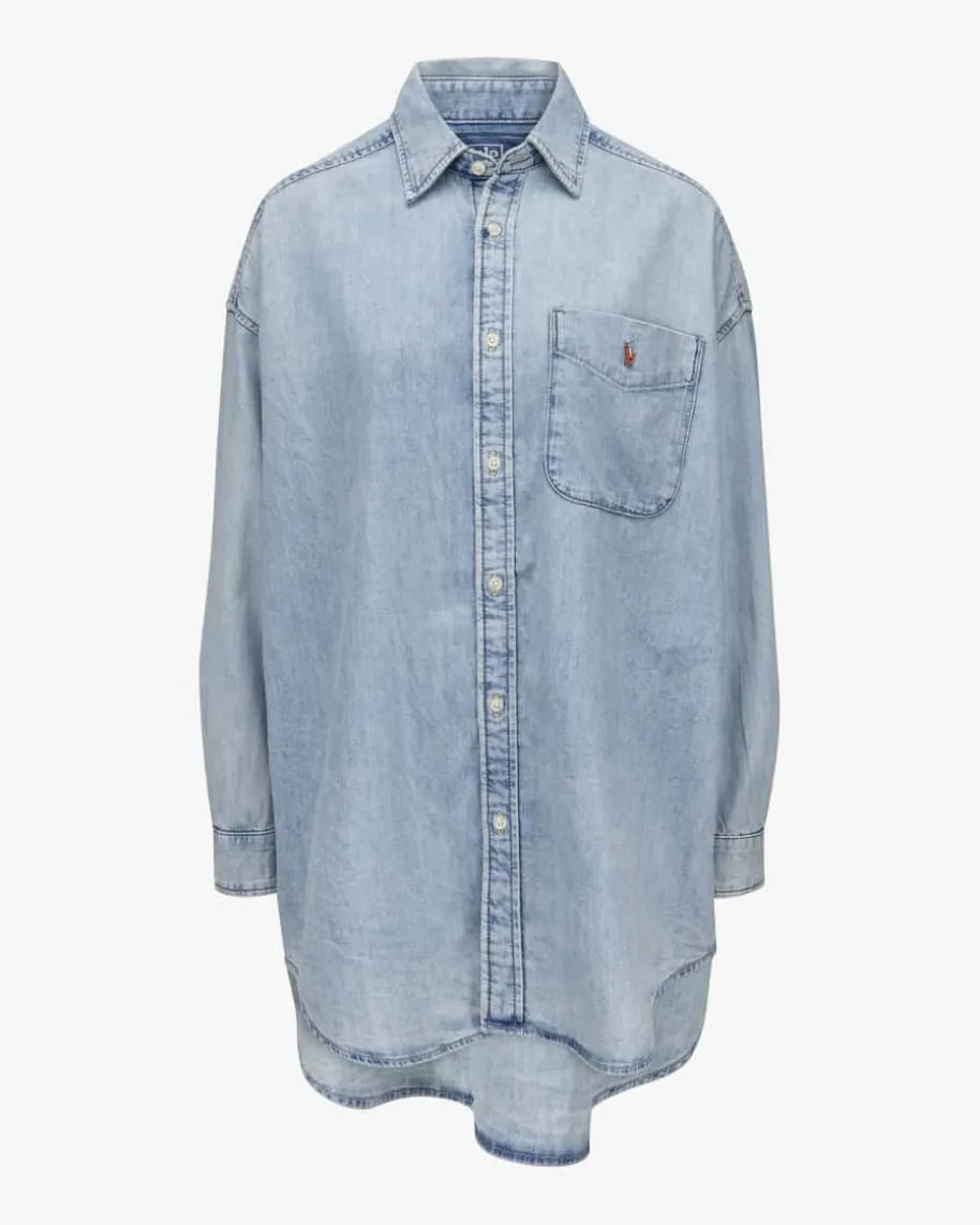 Jeansbluse für Damen von Polo Ralph Lauren in Hellblau. Das Modell aushochwertiger Baumwoll-Qualität überzeugt mit lässiger Schnittform undklassischen Details, während die Waschung den typischen Jeans-Charakterhervorhebt.