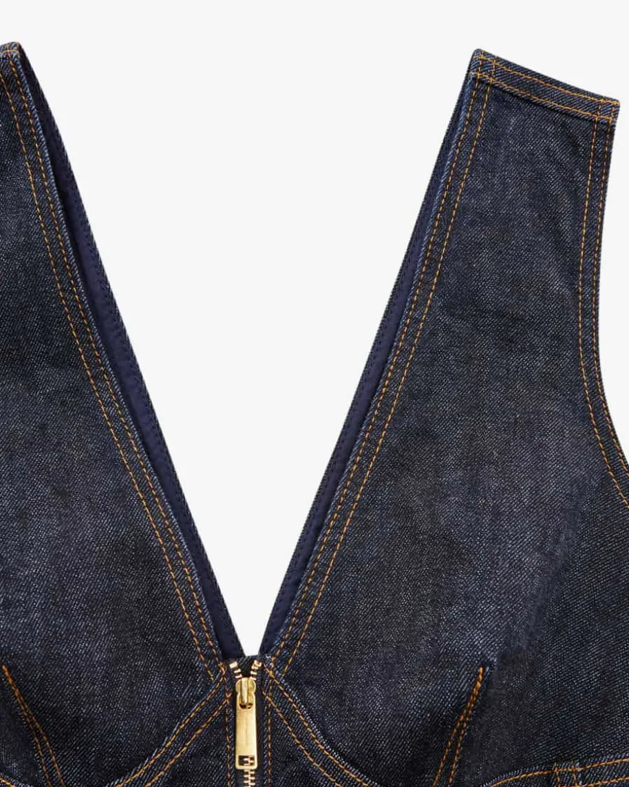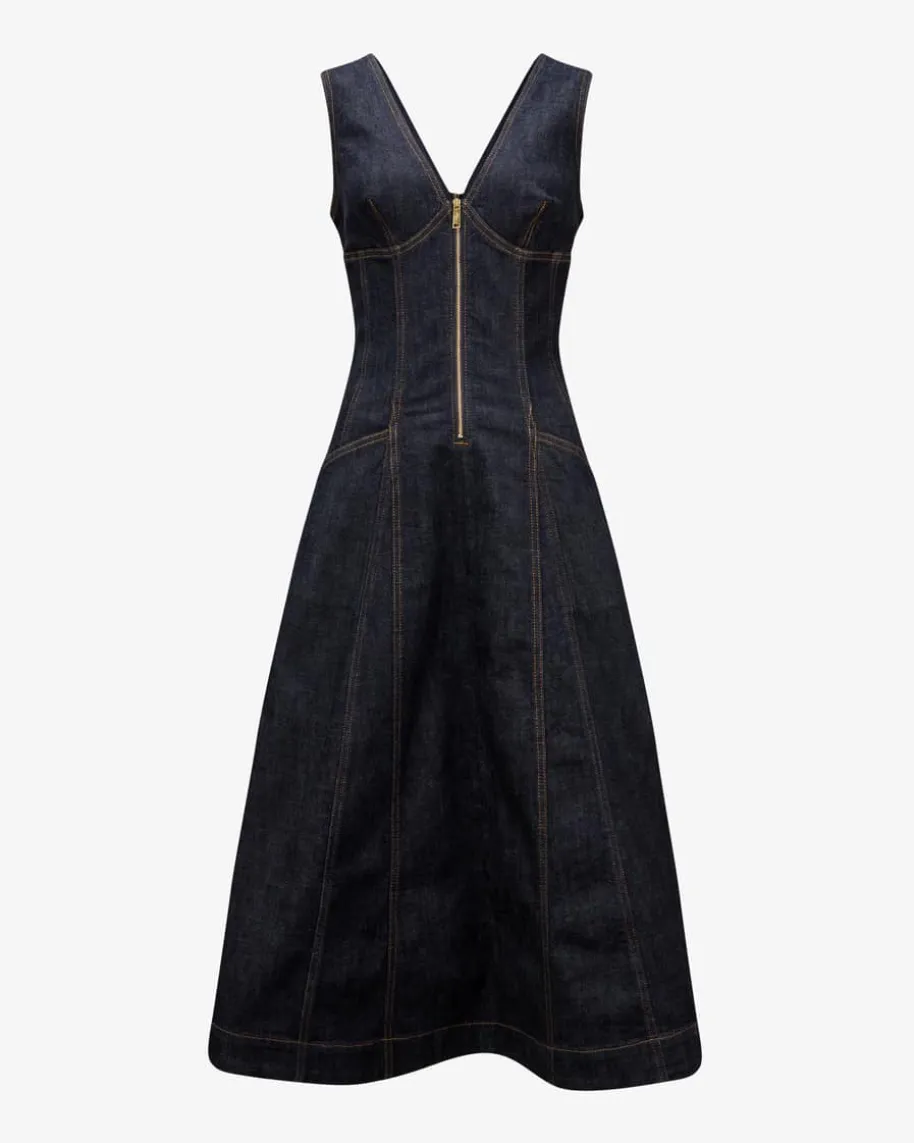 Jeanskleid für Damen von Self-Portrait in Dunkelblau. Das Modell präsentiertsich in moderner Denim-Aufmachung, die durch die schwere und gleichzeitigelastische Baumwoll-Verarbeitung und kontrastfarbene Abnäher die feminineSilhouette unterstreichen. Der markante Reißverschluss am Ausschnitt zusammenmit den stilvollen Taschen verleiht dem Look zudem einen modischen Streetstyle-Charakter.