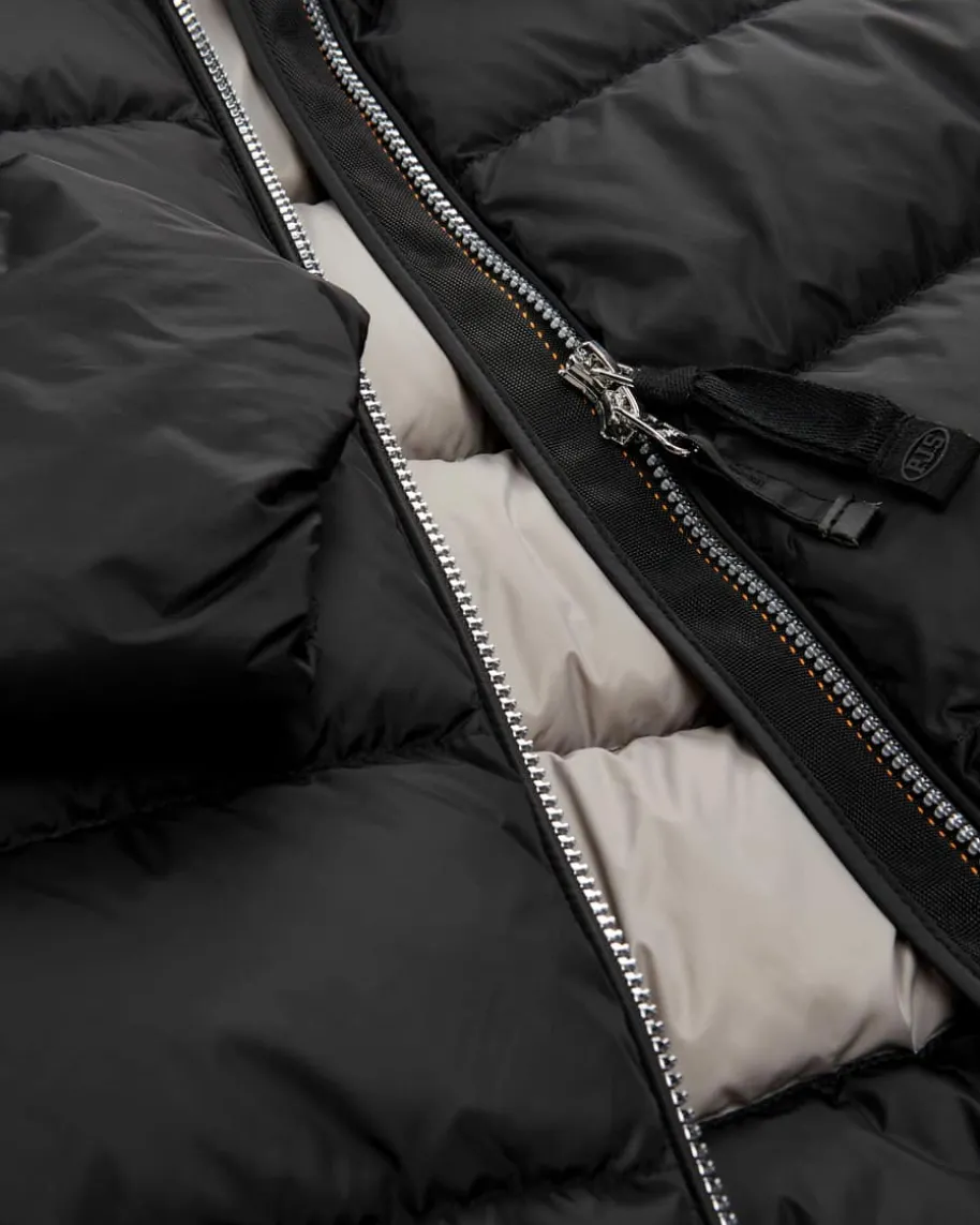 Jinny Daunenjacke für Damen von Parajumpers in Schwarz. Inspiriert von denmutigen Parajumpers, die unter extremen Umständen Rettungsoperationen undBergungen ausführen müssen, entstand die Philosophie des italienischen LabelsOutdoor-Mode zu entwerfen, die robust und zeitlos, aber auch modern und stilvollist. Dieses Modell präsentiert sich als sportiver Begleiter an kalten Tagen.