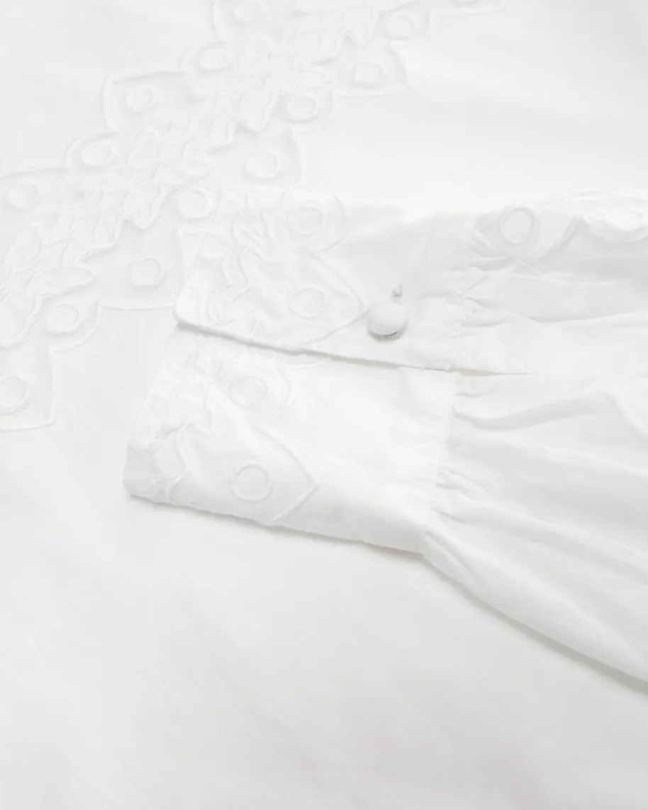Kady Bluse für Damen von Ulla Johnson in Weiß. Das Modell präsentiert sich inromantisch, femininer Tunika-Aufmachung und überzeugt mit klassisch-glatterBaumwoll-Qualität, während die semi-transparenten Mesh-Einsätze in Kombinationmit raffinierten Stickereien einen stilvollen Begleiter kreieren.