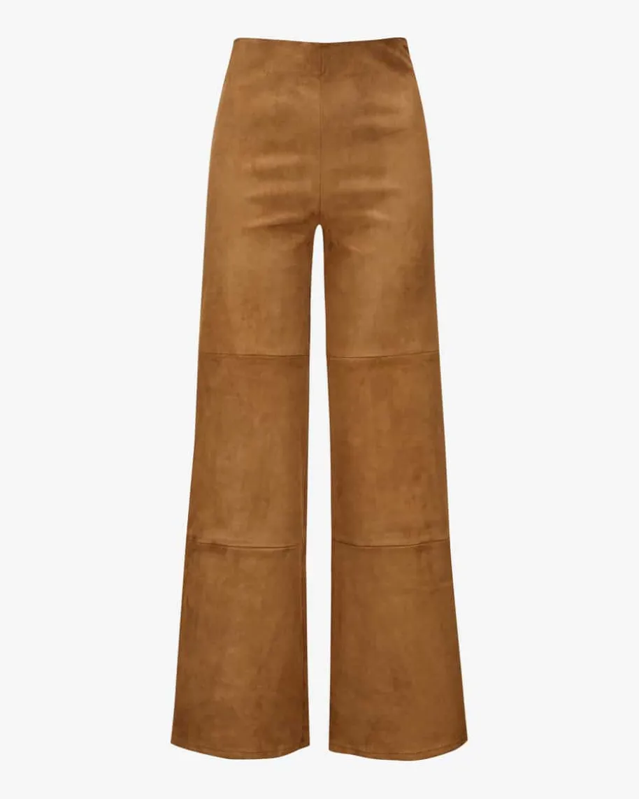 Karina Lederhose für Damen von Arma in Cognac. Das Modell überzeugt dankder hochwertigen Velourleder-Qualität mit angenehmen Tragemomenten, während dasschlichte Dessin einen vielseitigen Begleiter für modische Looks kreiert.