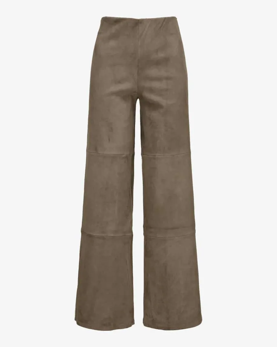 Karina Lederhose für Damen von Arma in Taupe. Das Modell überzeugt dank derhochwertigen Velourleder-Qualität mit angenehmen Tragemomenten, während dasschlichte Dessin einen vielseitigen Begleiter für modische Looks kreiert.