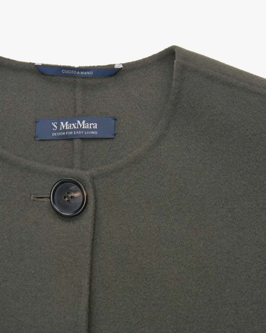 Kate Schal-Wolljacke für Damen von ‚S Max Mara in Oliv. DasModell überzeugt dank derhochwertigen Pure New Wool Schurwoll-Qualität mit einerbesonders weichenHaptik, während die raffinierte Schnittführung mitabnehmbarem Schal einenstilvollen Begleiter für die Übergangszeit schafft.
