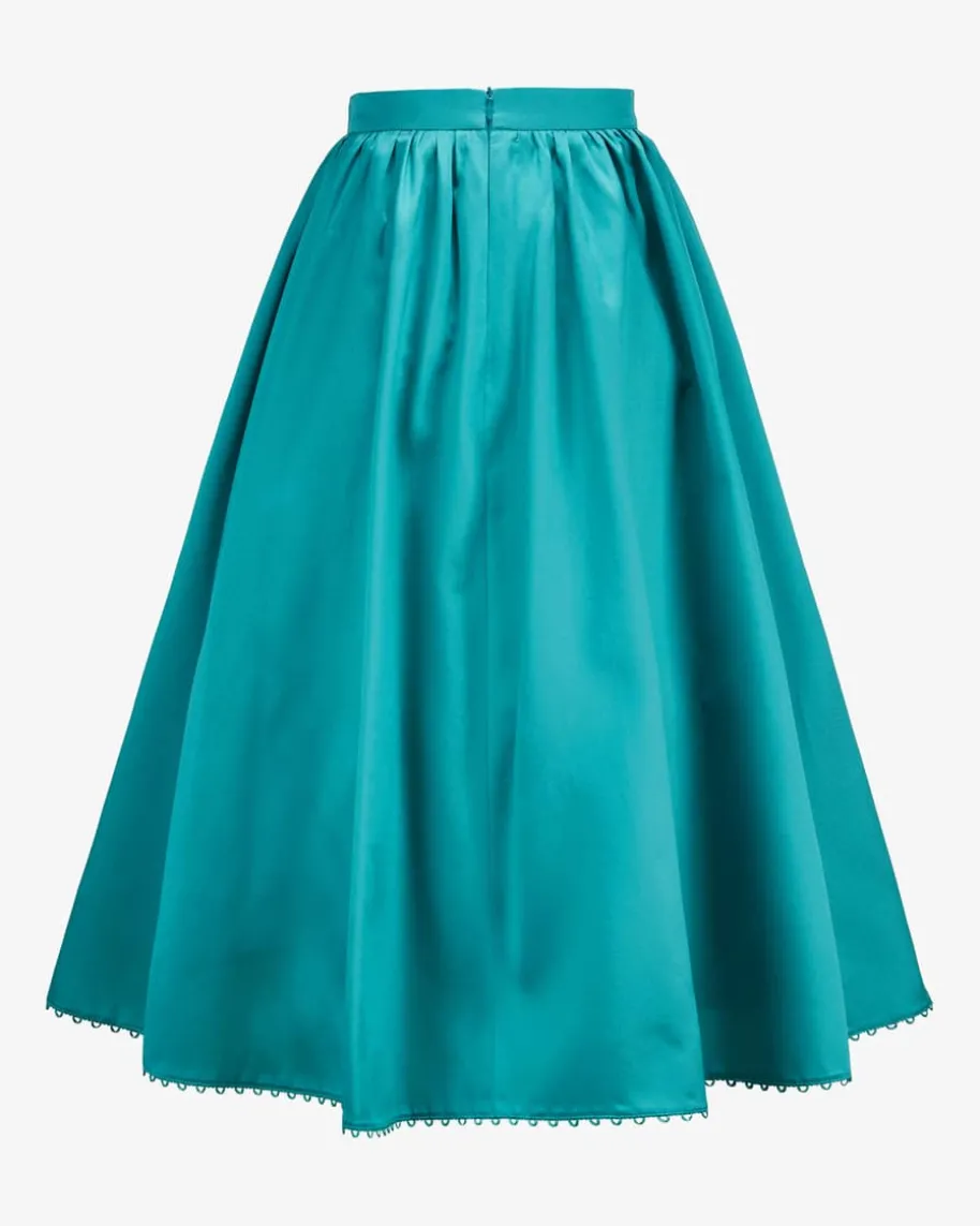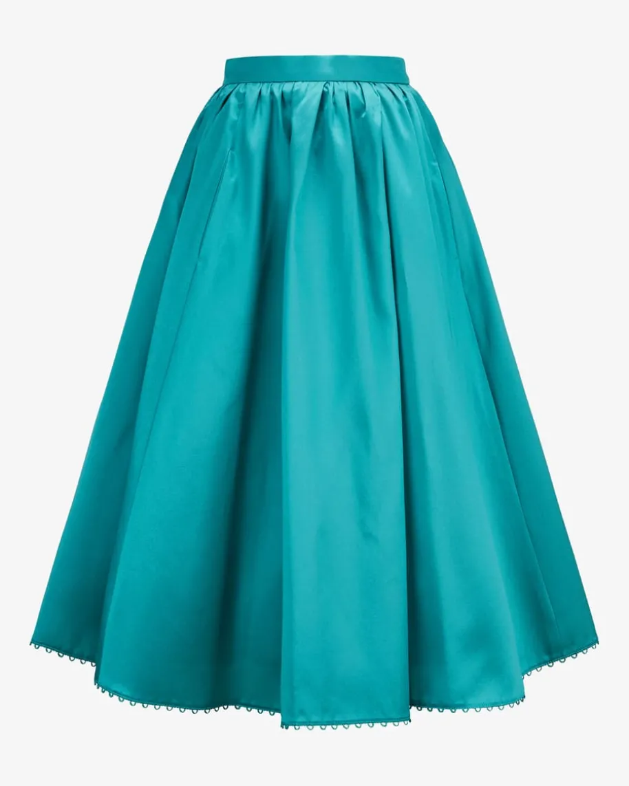 Kinga Trachtenrock für Damen von Kinga Mathe in Aqua. Das Modell präsentiertsich mit edel changierender Material-Qualität, die zusammen mit der Häkelborteam Saum für einen eleganten Look sorgt. Die Schubtaschen setzen zudem legereAkzente und runden das Gesamtbild so raffiniert ab.