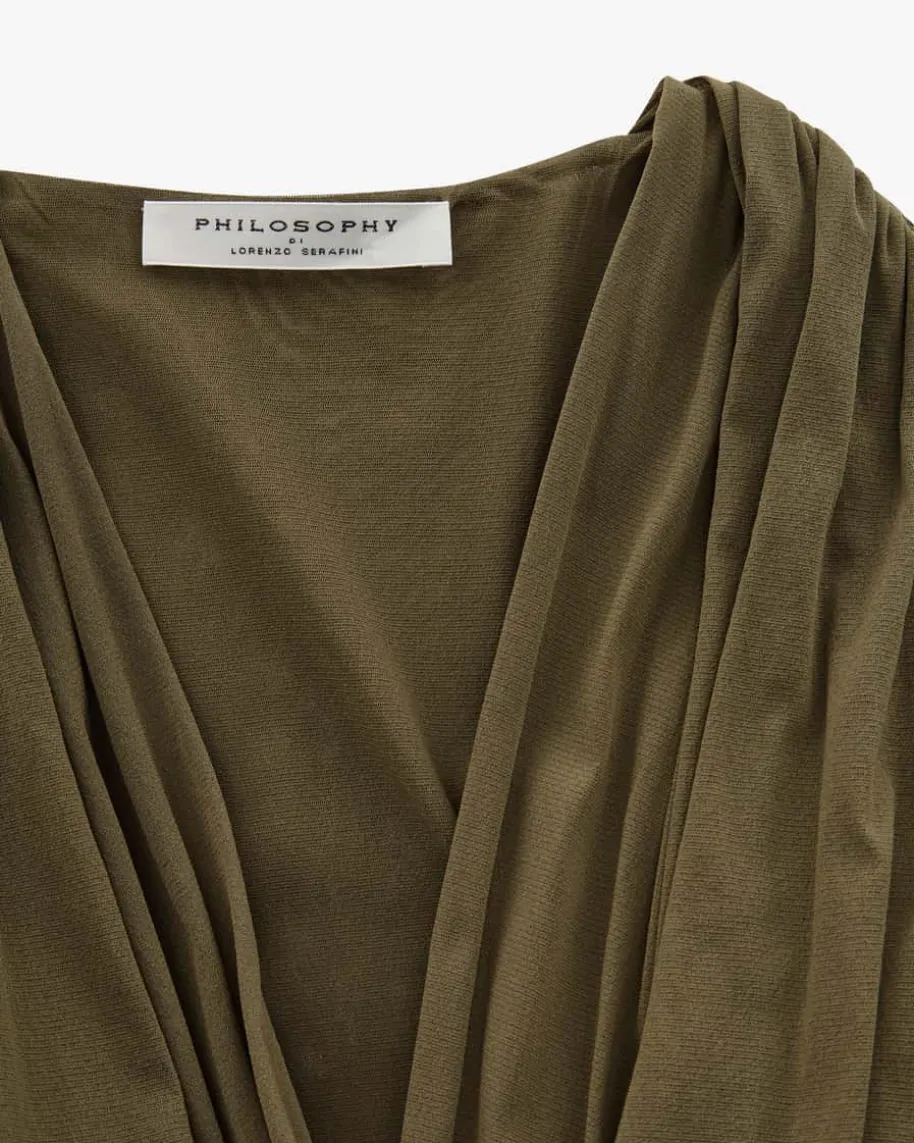 Kleid für Damen von Philosophy in Oliv. Das Modell in feiner Chiffon-Qualitätüberzeugt in femininer Silhouette, welche dank der vielfältigen Raffungen undbesonderen Schnittform mit Aussparungen unter den Ärmeln gekonnt in Szenegesetzt wird – Ein stilvoller Favorit für elegante Abend-Looks.