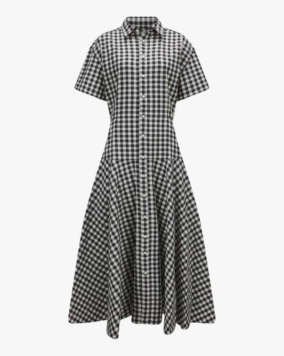 Kleid für Damen von Polo Ralph Lauren in Schwarz und Weiß. Dank hochwertigerBaumwoll-Qualität in leichter Seersucker-Aufmachung überzeugt das Modell mitangenehmem Tragegefühl, während die Hemdblusen-Silhouette mit weit ausgestelltemRock einen femininen Look kreiert. Das Vichykaro-Muster vollendet den Stylecharmant.