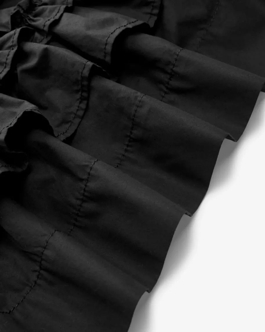 Kleid für Damen von Ganni in Schwarz. Das Modell in hochwertiger Baumwoll-Qualität überzeugt in romantischer Schnittführung, welche für eine feminineSilhouette sorgt, während klassische Details einen sommerlichen Begleiter füreinen Strandbesuch oder Gartenparty kreieren.