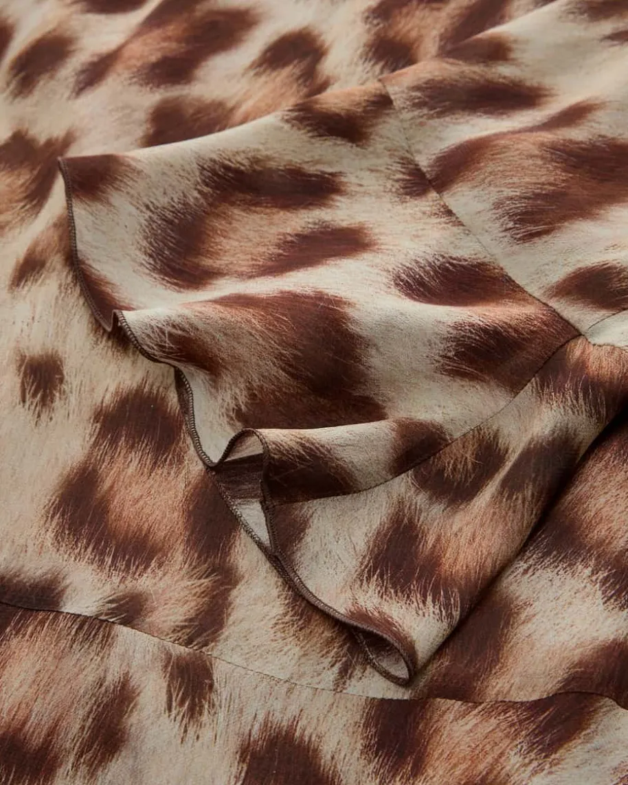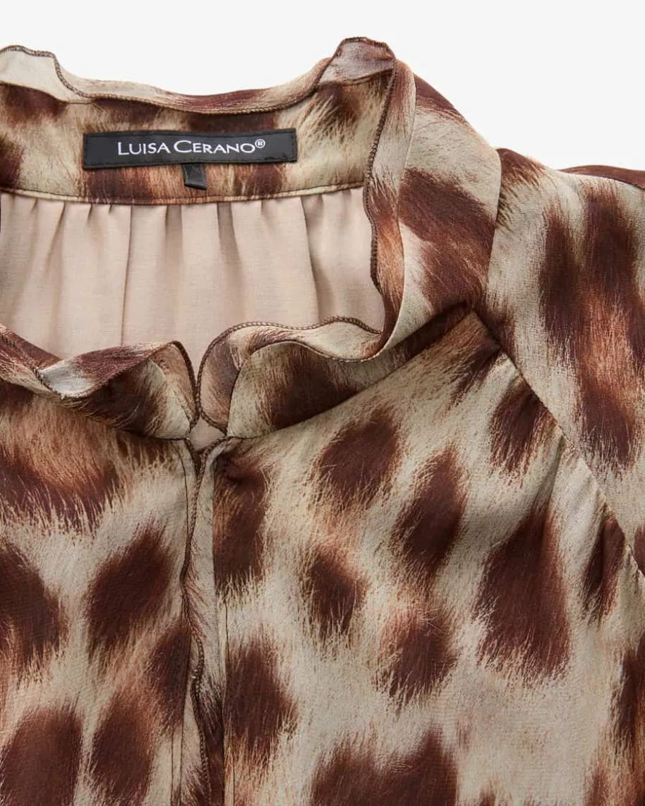 Kleid für Damen von Luisa Cerano in Beige und Braun. Das zweilagige Modellbegeistert mit stilvollen Volants und avanciert zusammen mit dem modernenLeomuster zum romantischen Favoriten mit Biker-Flair. Das semitransparenteDesign vollendet den Look harmonisch.