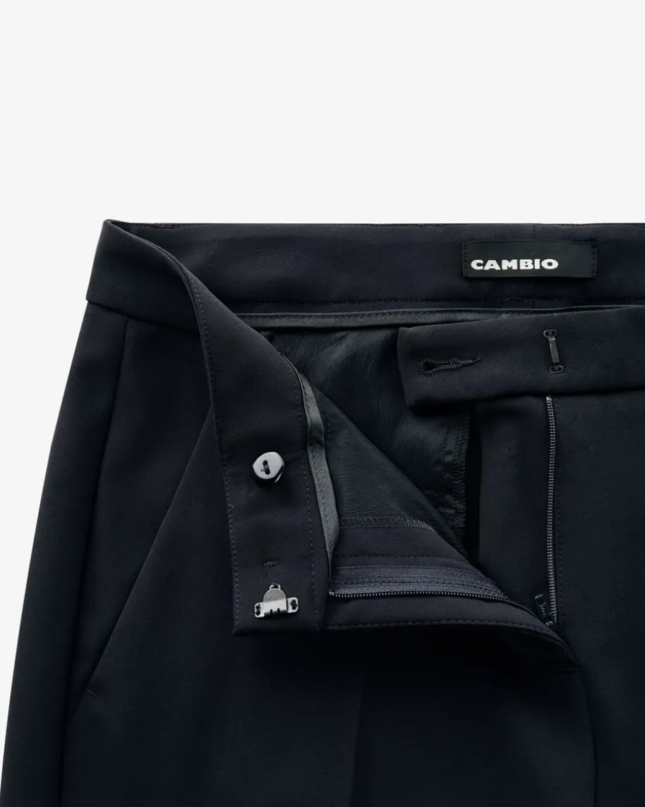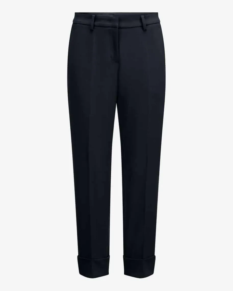 Krystal 7/8-Hose für Damen von Cambio in Nachtblau. Mit zulaufendem Schnitt undelastischer Stoff-Qualität überzeugt die Hose des femininen Modelabels, währendklassische Details sowie Bügelfalten und der breite Hosenaufschlag einstilsicheres Highlight für sowohl modische Casual-Looks als auch zeitloseBusiness-Outfits schaffen.