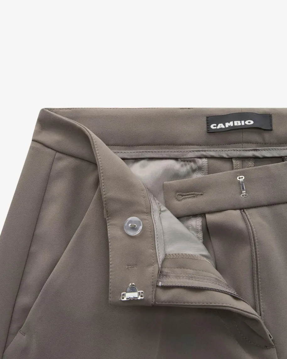 Krystal 7/8-Hose für Damen von Cambio in Graugrün. Mit zulaufendem Schnitt undelastischer Stoff-Qualität überzeugt die Hose des femininen Modelabels, währendklassische Details sowie Bügelfalten und der breite Hosenaufschlag einstilsicheres Highlight für sowohl modische Casual-Looks als auch zeitloseBusiness-Outfits schaffen.