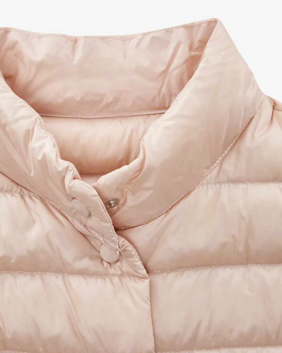 Laine Daunenweste für Damen von Moncler in Rosé. Denkt man an hochwertige,warme Daunenjacken, kommt einem unweigerlich das italienische TraditionslabelMoncler in den Sinn. Auch mit dieser leichten Weste präsentiert das Label dankder hochwertigen Daunen-Feder-Füllung einen optimalen Begleiter für stilvolleLagen-Looks, während das changierende Steppmuster sowie die charakteristischeLogo-Applikation ein zeitloses wie auch sportives Gesamtbild kreiert.