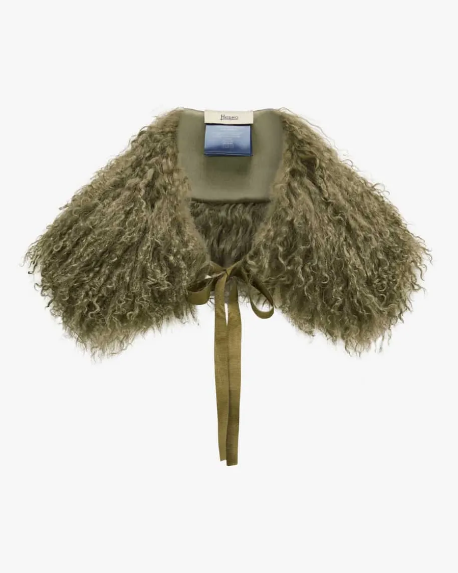 Lammfell-Kragen für Damen von Herno in Oliv. Verleihen Sie mit diesem Kragen-Besatz aus weichem Lammfell in welliger Aufmachung Ihrem Outdoor-Look einenextravaganten Touch mit wärmendem Effekt. Dank der Schnürung ist er individuelltragbar.