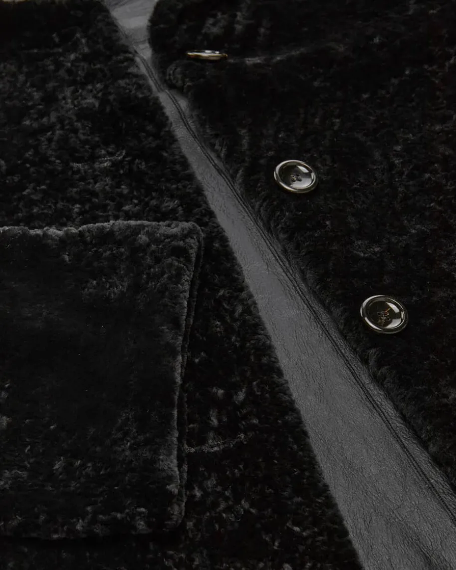 Lammfelljacke für Damen von Manzoni 24 in Schwarz. Das Modell präsentiert sichin hochwertiger Shearling-Qualität, die einen edlen Blickfang kreiert und auchhaptisch mit besonders weichem Griff überzeugt. Die weite Passform mit Rundhals-Ausschnitt rundet den Look stilvoll ab.