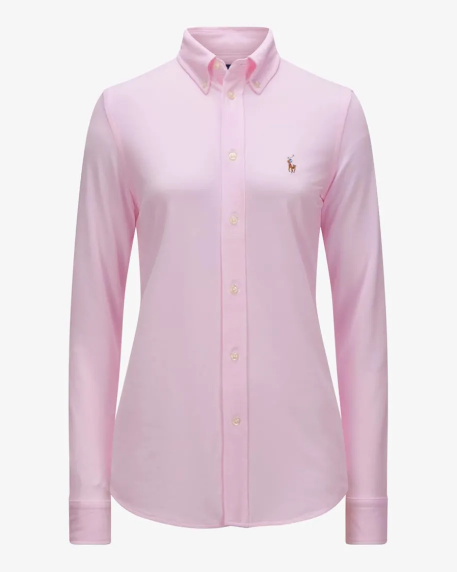 Langarm-Polo für Damen von Polo Ralph Lauren in Rosa. Mit schmalem Schnitt undweicher Piqué-Qualität präsentiert sich das sportiv- elegante Basic in Blusen-Optik, während die charakteristische Logo-Stickerei den letzten Schliffverleiht.