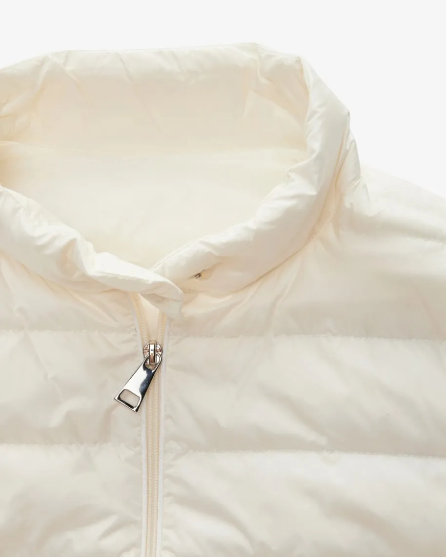 Lans Daunenjacke für Damen von Moncler in Off-White. Denkt man an hochwertige,warme Daunenjacken, kommt einem unweigerlich das italienische TraditionslabelMoncler in den Sinn. Auch mit diesem leichten Modell präsentiert das Label dankder hochwertigen Daunen-Feder-Füllung einen optimalen Outdoor-Begleiter fürvielseitige Looks, welcher durch die Passform mit schmalem Stehkragen undmodischen Klappentaschen gekonnt in Szene gesetzt wird.