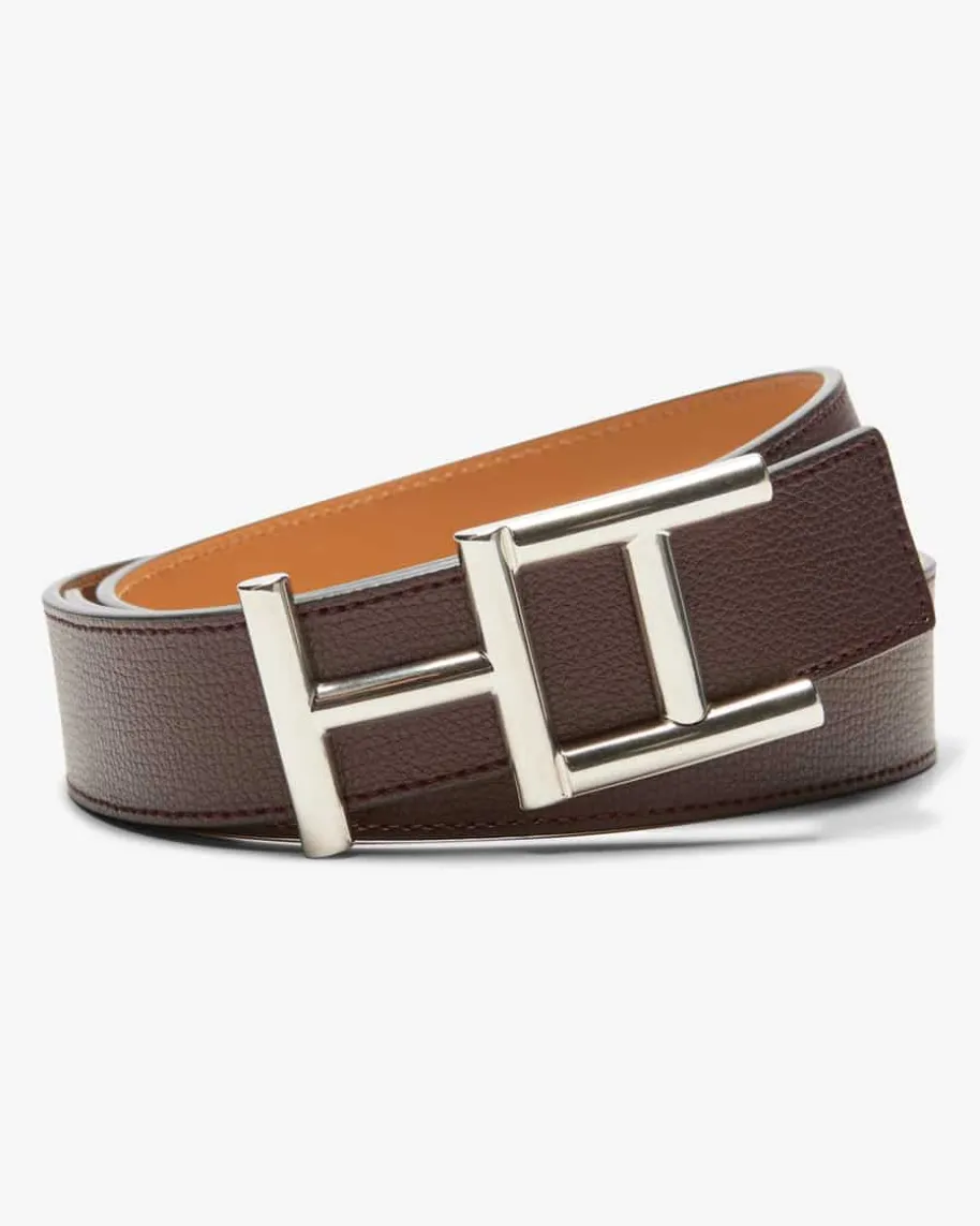 Ledergürtel für Damen von Hemisphere in Bordeaux. Das Modell aus hochwertig,dezent genarbtem Leder präsentiert sich in moderner Aufmachung, während diesilberne Schließe das Gesamtbild stilvoll aufwertet.