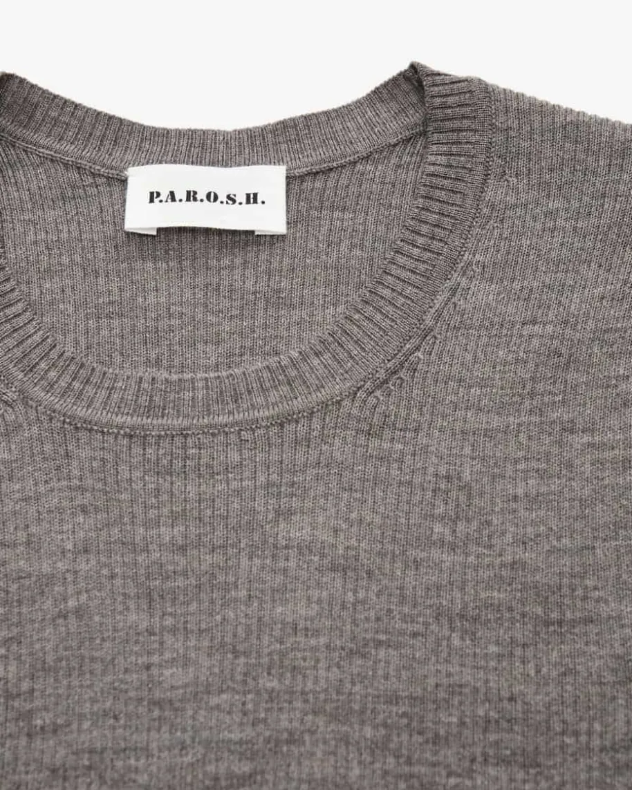 Leila Strickshirt für Damen von Parosh in Taupe. Während die angenehm-leichteWoll- Qualität in elastischer Rippstrick-Aufmachung für einen optimalen Sitzsorgt, avanciert das Modell dank cleanem T-Shirt-Design mit leicht verlängertenkurzen Ärmeln zum perfekten Basic für jeden Tag.