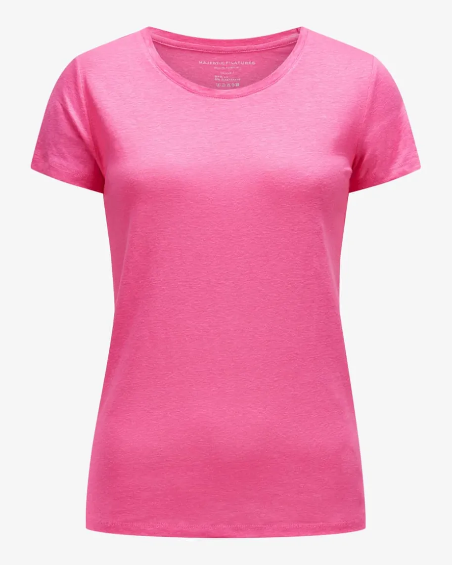 Leinen T-Shirt für Damen von Majestic Filatures in Pink. Ein perfektes Basic- Das leicht taillierte Modell überzeugt dank dem elastischen Leinen-Mix und derweichen Soft-Touch-Qualität mit hohem Tragekomfort.