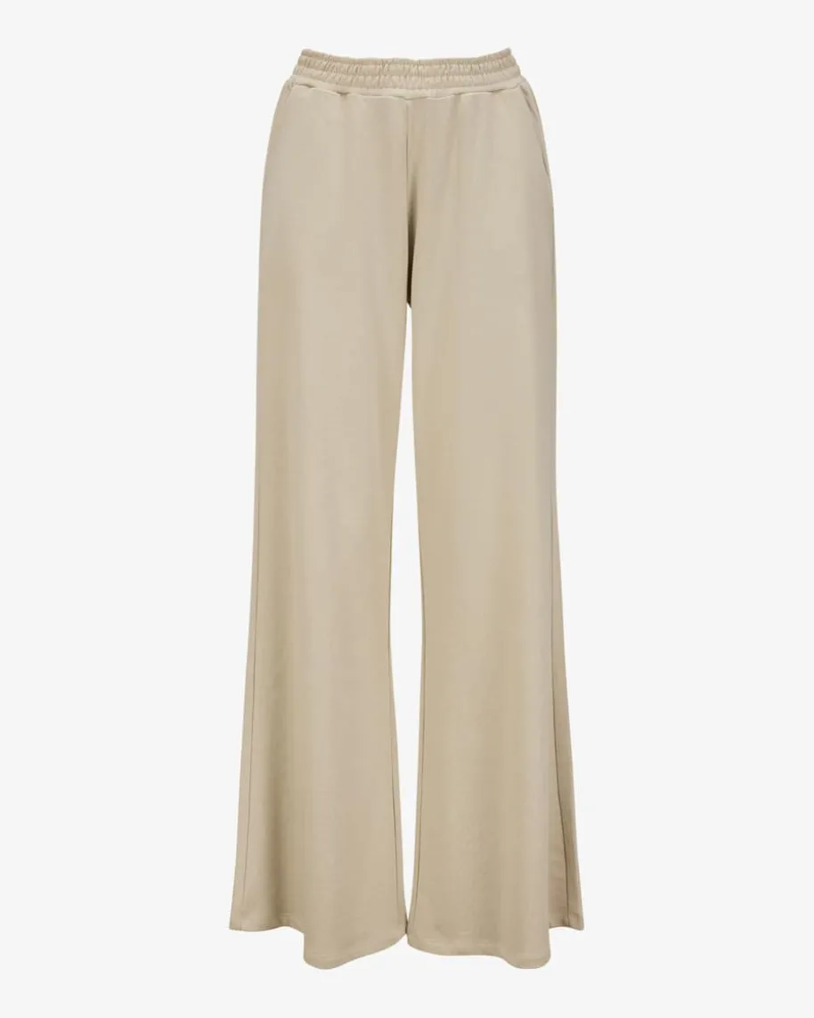 Lely Sweathose für Damen von Love Joy Victory in Stein. Das Modell ausangenehmer Bio-Baumwolle präsentiert sich in legerer Sweat-Aufmachung, währenddas ausgestellte Bein dem sonst sportivem Lounge-Look ein modernes Updateverleiht. Zugleich verleiht die angeraute Innenseite ein angenehmes Tragegefühl.