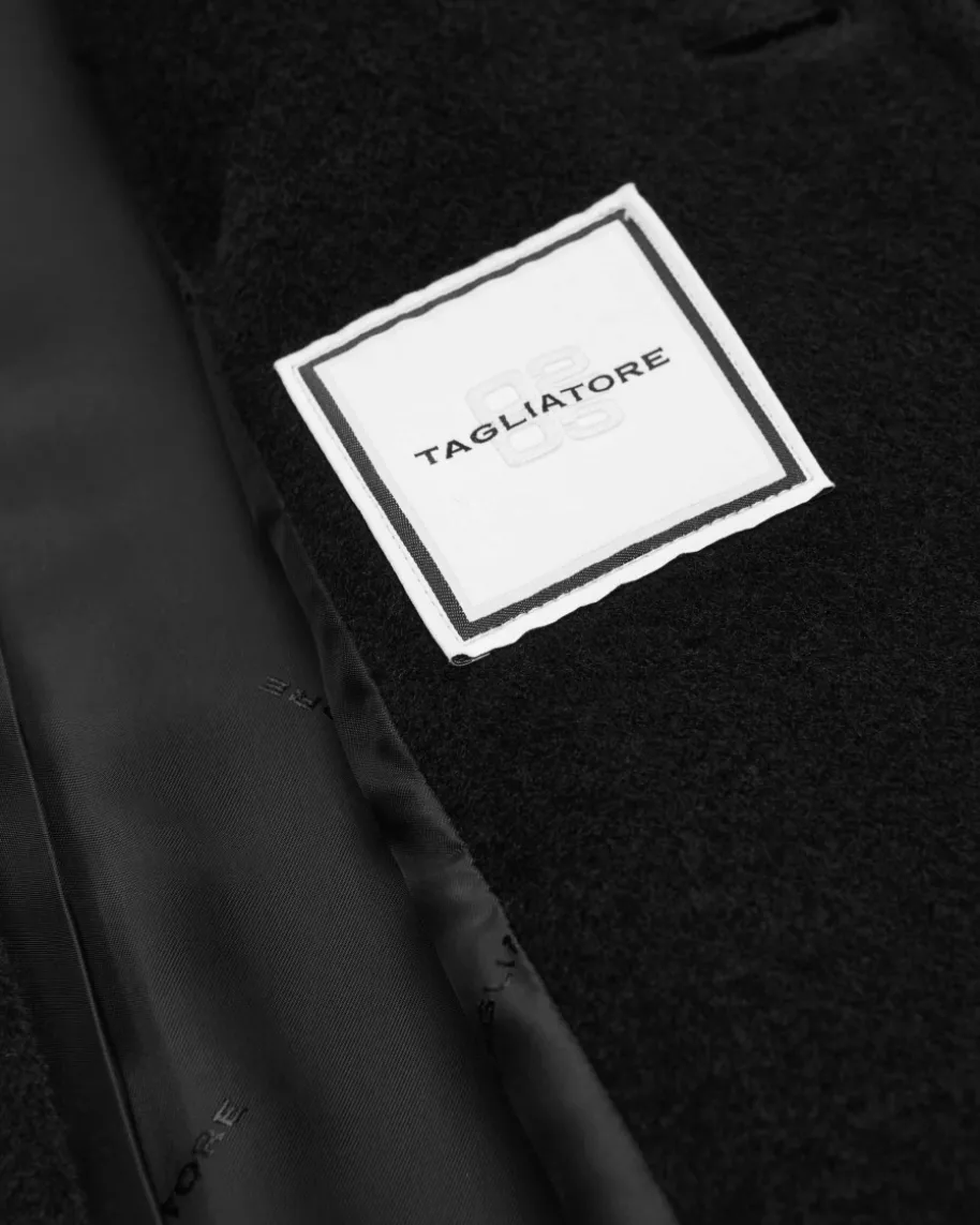 Lilian Wollmantel für Damen von Tagliatore in Schwarz. Das weite Modell bestichtdank der strukturierten Schurwoll-Qualität mit einer angenehmen Haptik, währenddas zeitlose Design und die moderne Schnittführung ein modisches Gesamtbildkreieren.