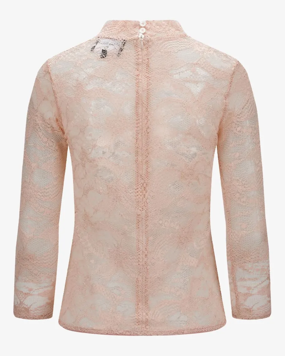 Lina Spitzenbluse für Damen von Kinga Mathe in Puder. Das taillierte,hochgeschlossene Modell zeichnet sich durch die transparente Spitzen-Qualitätaus, welche dank feiner Paspelierungen stilvoll ergänzt wird. Auch zum Dirndleignet sich das Piece dank klassischer Details als stilsichere Wahl.