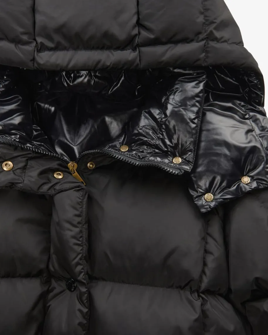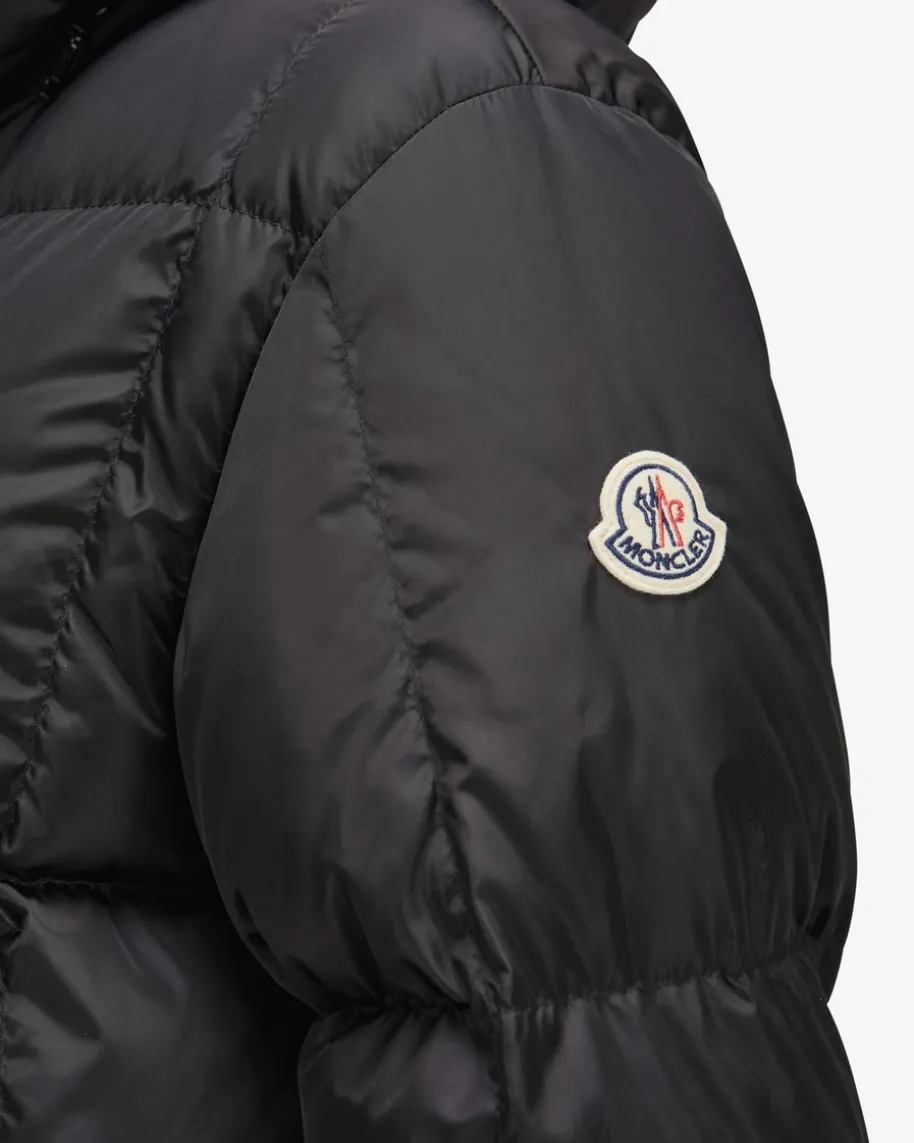 Litte Daunenmantel für Damen von Moncler in Schwarz. Denkt man an hochwertige,warme Daunenjacken, kommt einem unweigerlich das italienische TraditionslabelMoncler in den Sinn. Auch mit diesem langen Modell präsentiert das Label dankder hochwertigen Daunen-Feder-Füllung einen optimalen Begleiter für die kühlereJahreszeit, während die sportiven Details und die abtrennbare Kapuze einenmodischen und zugleich komfortablen Favoriten kreieren.