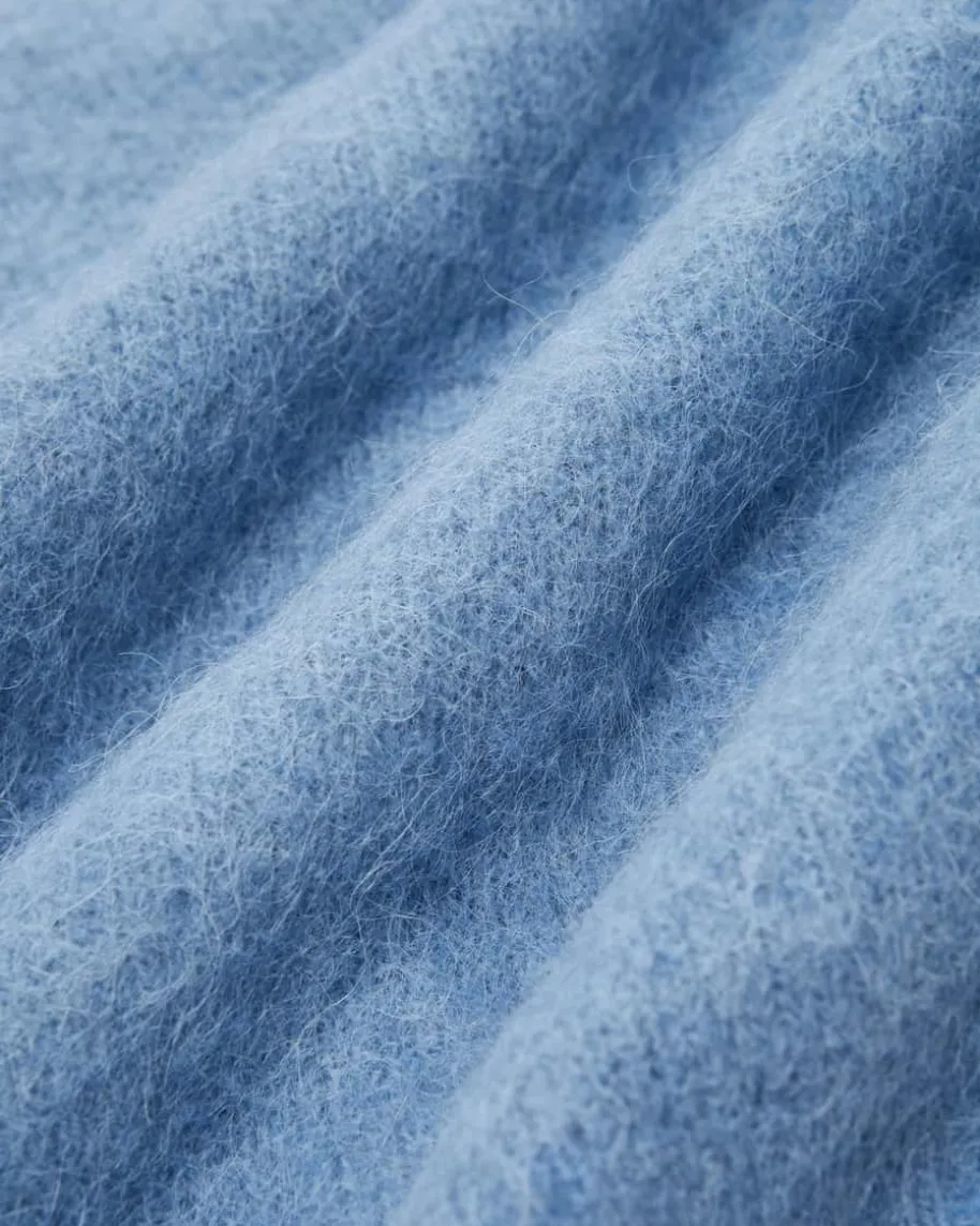 Locca Strickjacke für Damen von Munthe in Hellblau. Das skandinavische Label ausKopenhagen – feminin & cool. Auch dieses kurzärmlige Modell begeistert mitmarkanten Knöpfen und weicher Brushed Optik aus Alpakawolle-Mix, der angenehmeTragemomente garantiert.