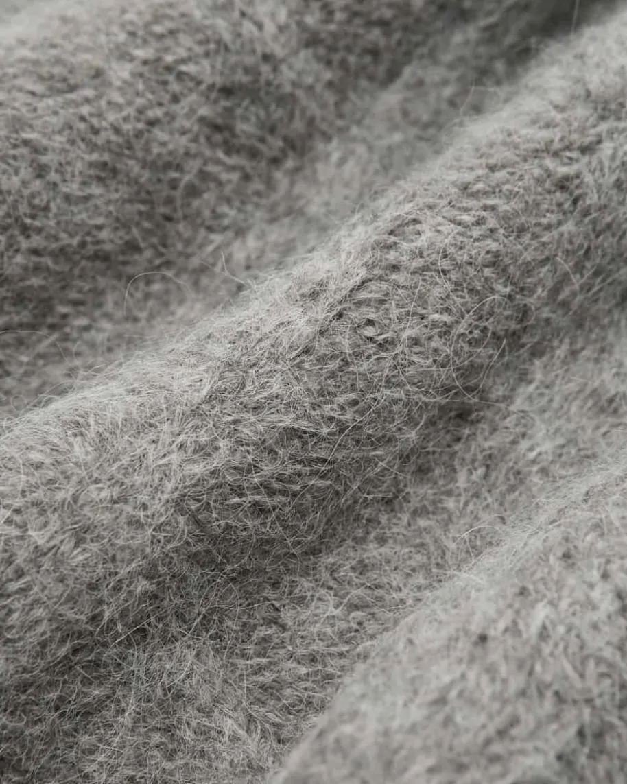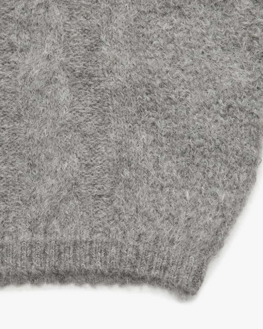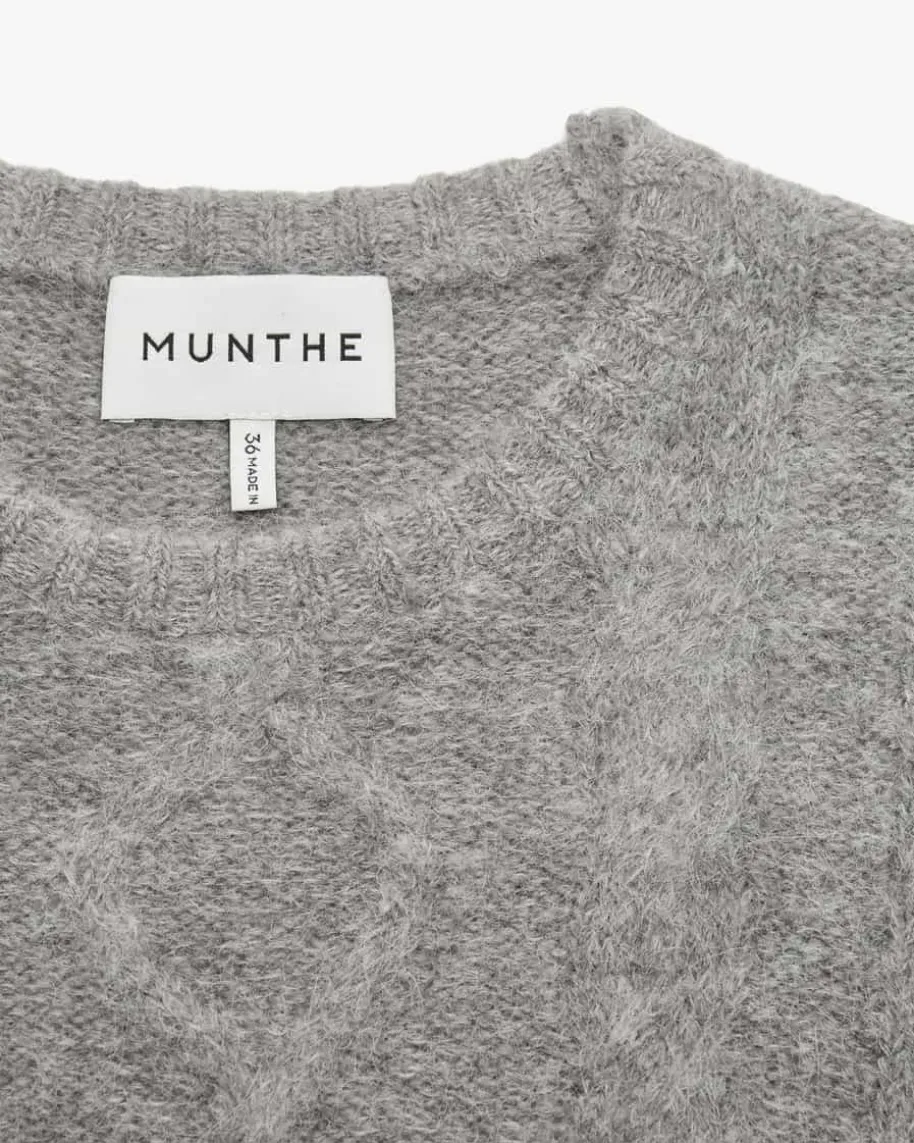 Loline Strickshirt für Damen von Munthe in Grau. Das skandinavische Label ausKopenhagen – feminin & cool. Auch dieses Modell begeistert mit verkürzter Boxy-Passform und klassischem Zopfstrickmuster, während der weiche Woll-Mix dasmodische Gesamtbild gekonnt abrundet.