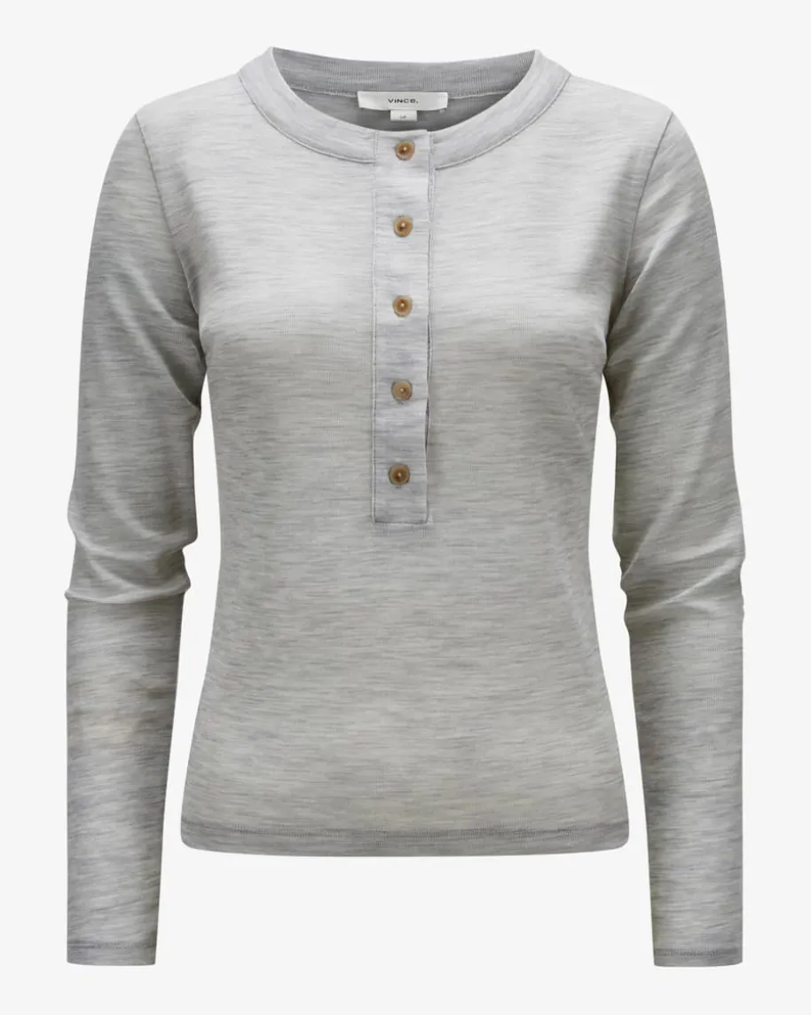 Longsleeve für Damen von Vince in Hellgrau. Während der taillierte Schnittzusammen mit dem minimalistischen Design einen kombistarken Casual-Favoritenschaffen, sorgt die semitransparente Feinstrick-Aufmachung für einen modernenTwist.