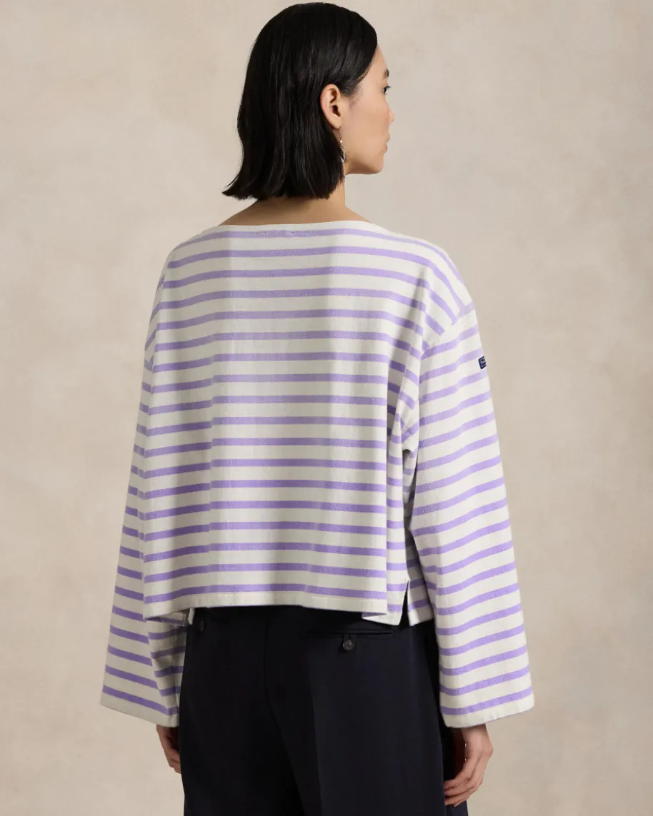 Longsleeve für Damen von Polo Ralph Lauren in Oliv und Off-White. Das Modell ausreiner Baumwolle überzeugt durch die weite Passform undklassischem Streifen-Dessin. Ein modischer Begleiter für vielseitige Casual-Looks.