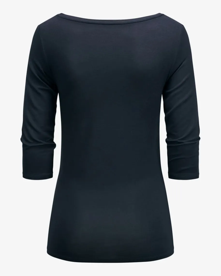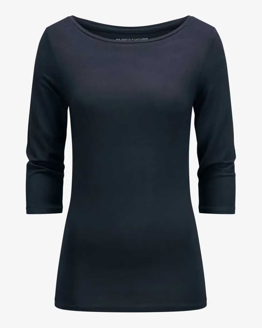 Longsleeve für Damen von Majestic Filatures in Marine. Ein perfektes Basic – Dasschlichte Modell überzeugt dank dem elastischen Material-Mix und der angenehmenSoft-Touch-Qualität mit hohem Tragekomfort.