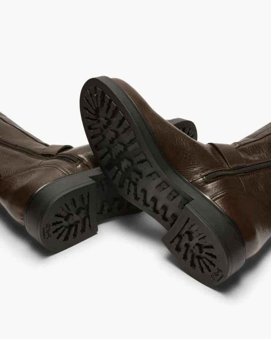 Loren Biker-Boots für Damen von AGL in Dunkelbraun. Ein saisonaler Allrounder –egal ob zum romantischen Kleid oder rockigen Lederhose getragen. Das Modell inhochwertiger Rindsleder-Qualität überzeugt in modischer Biker-Silhouette mit 3verstellbarem Riemen und praktischem seitlichen Reißverschluss.