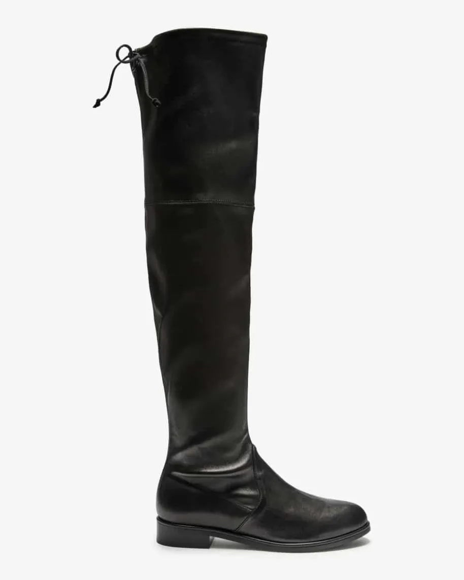 Lowland Bold Overknee-Stiefel für Damen von Stuart Weitzman in Schwarz. DasModell begeistert durch die Verwendung von hochwertigem Glattleder in stilvollerAufmachung, während die schmale Silhouette sowie der hohe Schaft mit Schnürungeinen femininen Begleiter schaffen.