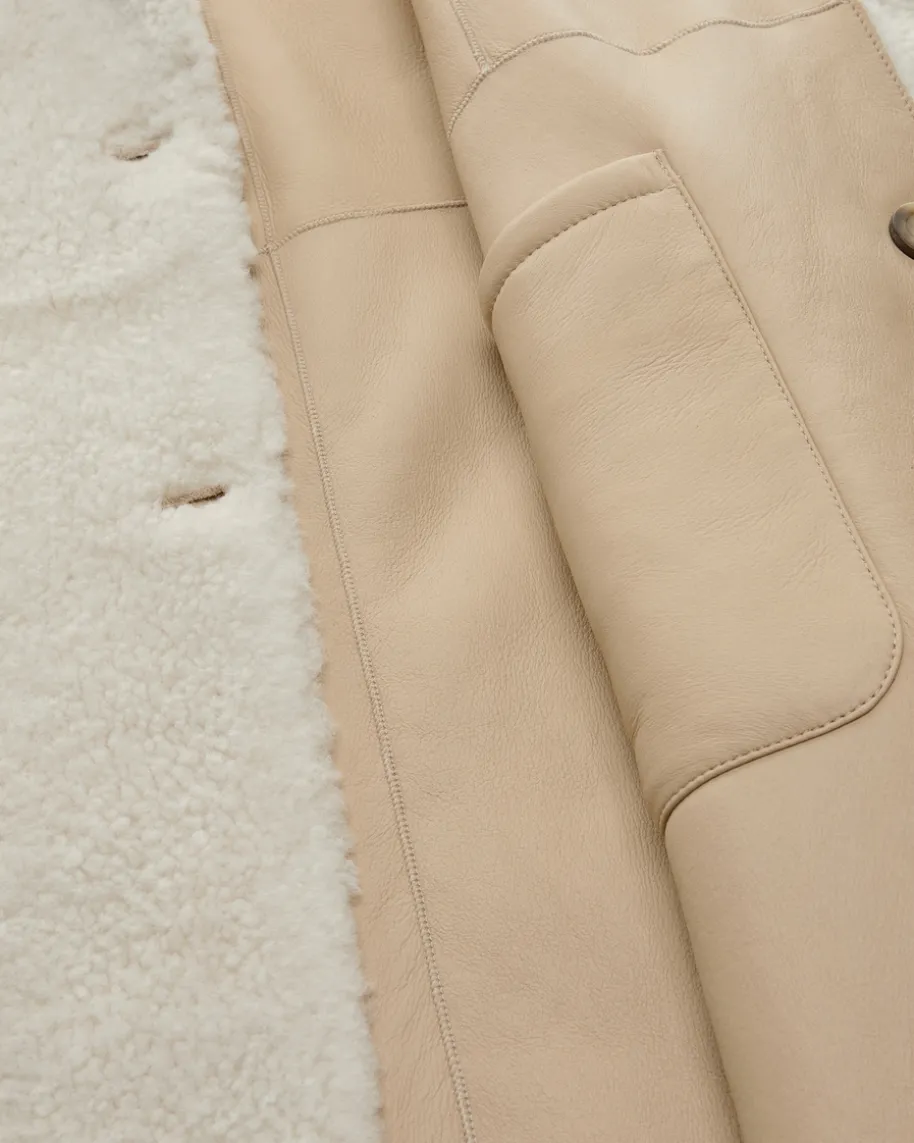 Luceram Wende-Lammfellmantel für Damen von Arma in Ecru. Das Label ist einSynonym für exquisite und zeitlose Lederbekleidung. Das Modell zeichnet sichdurch die praktische Wende-Funktion aus. Während das weiche Merinillo Alba-Shearling mit wolliger Haptik punktet, verleiht das Soft-Touch-Leder in matterOptik dem Gesamtbild eine edle Note.
