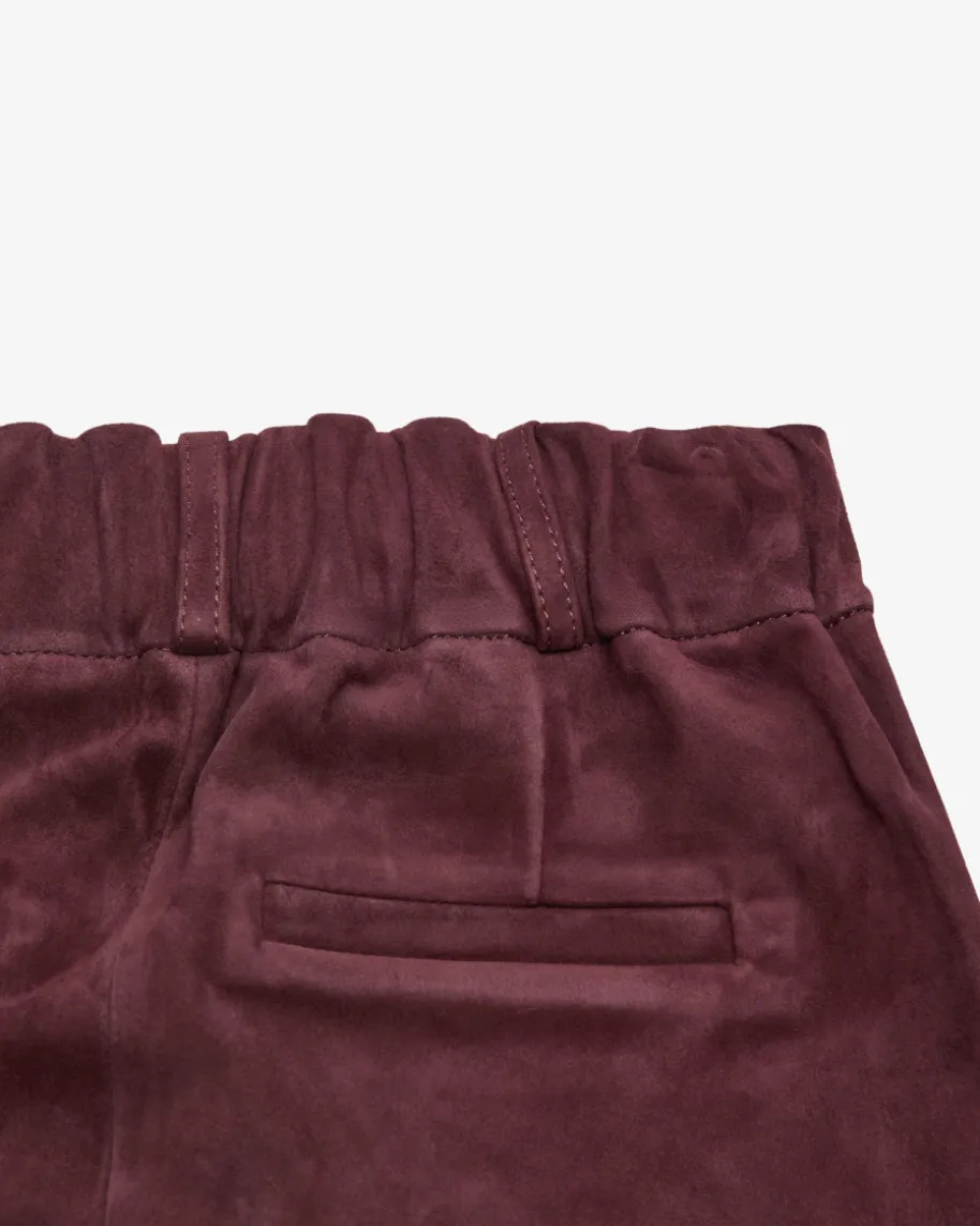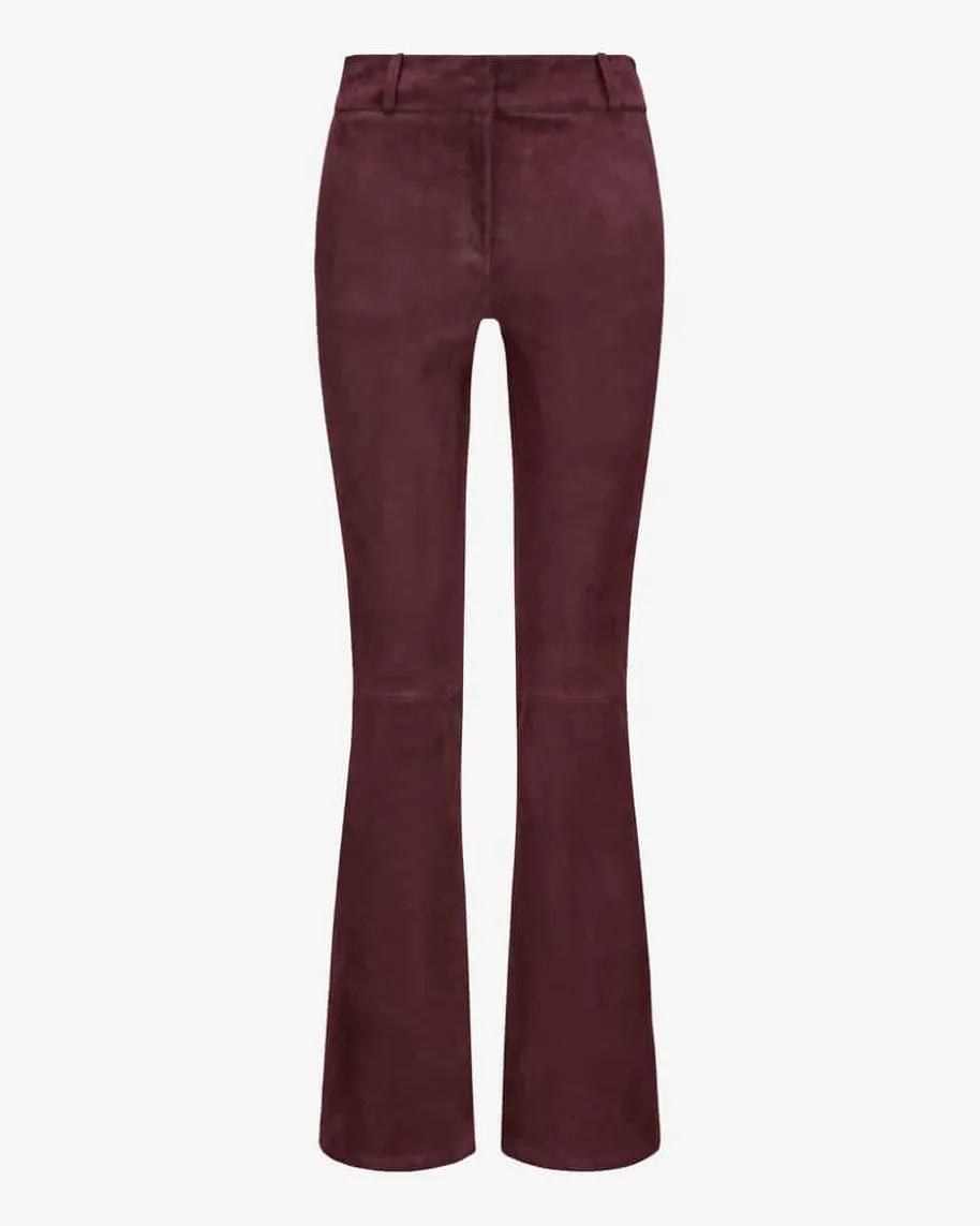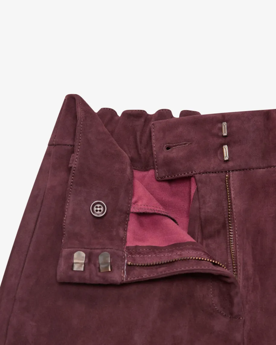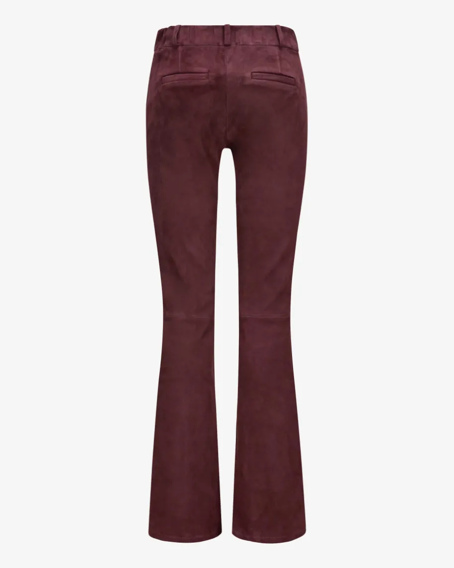 Lucia Lederhose für Damen von ARMA in Bordeaux. Aus edlem Lammvelours bestichtdieses ausgestellte Modell sowohl optisch als auch haptisch, während dieTeilungsnähte und klassische Details den Look gekonnt vollenden.
